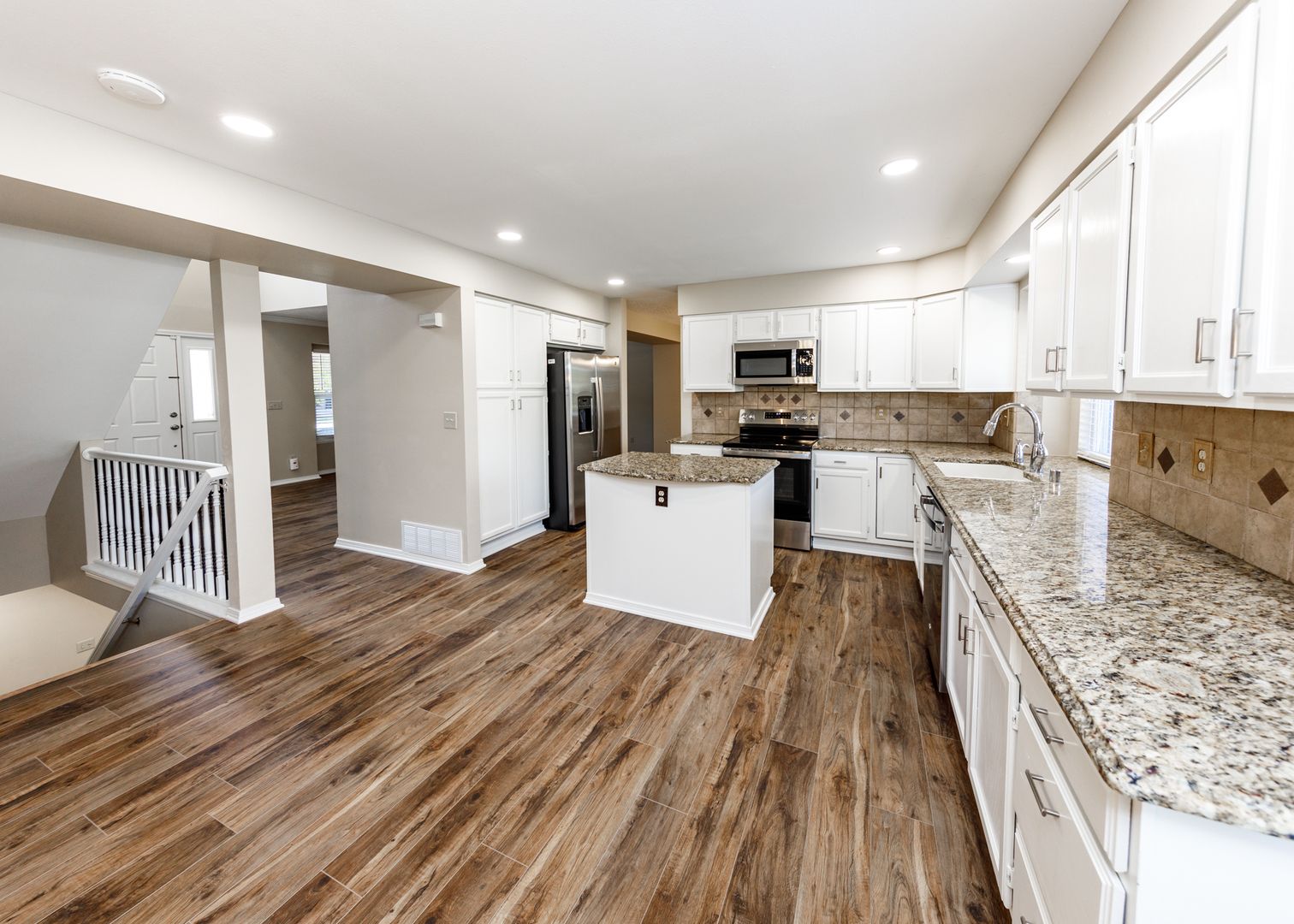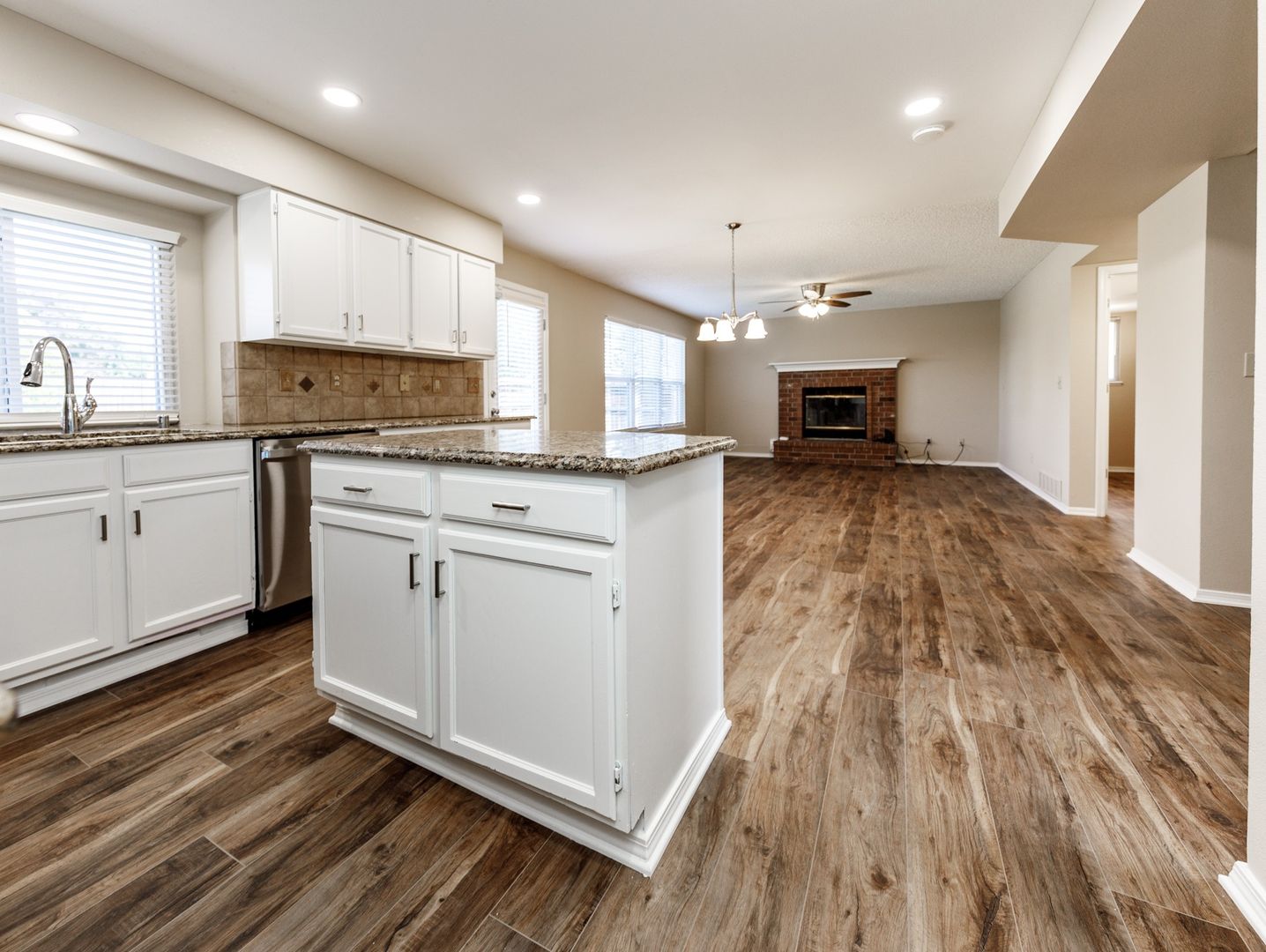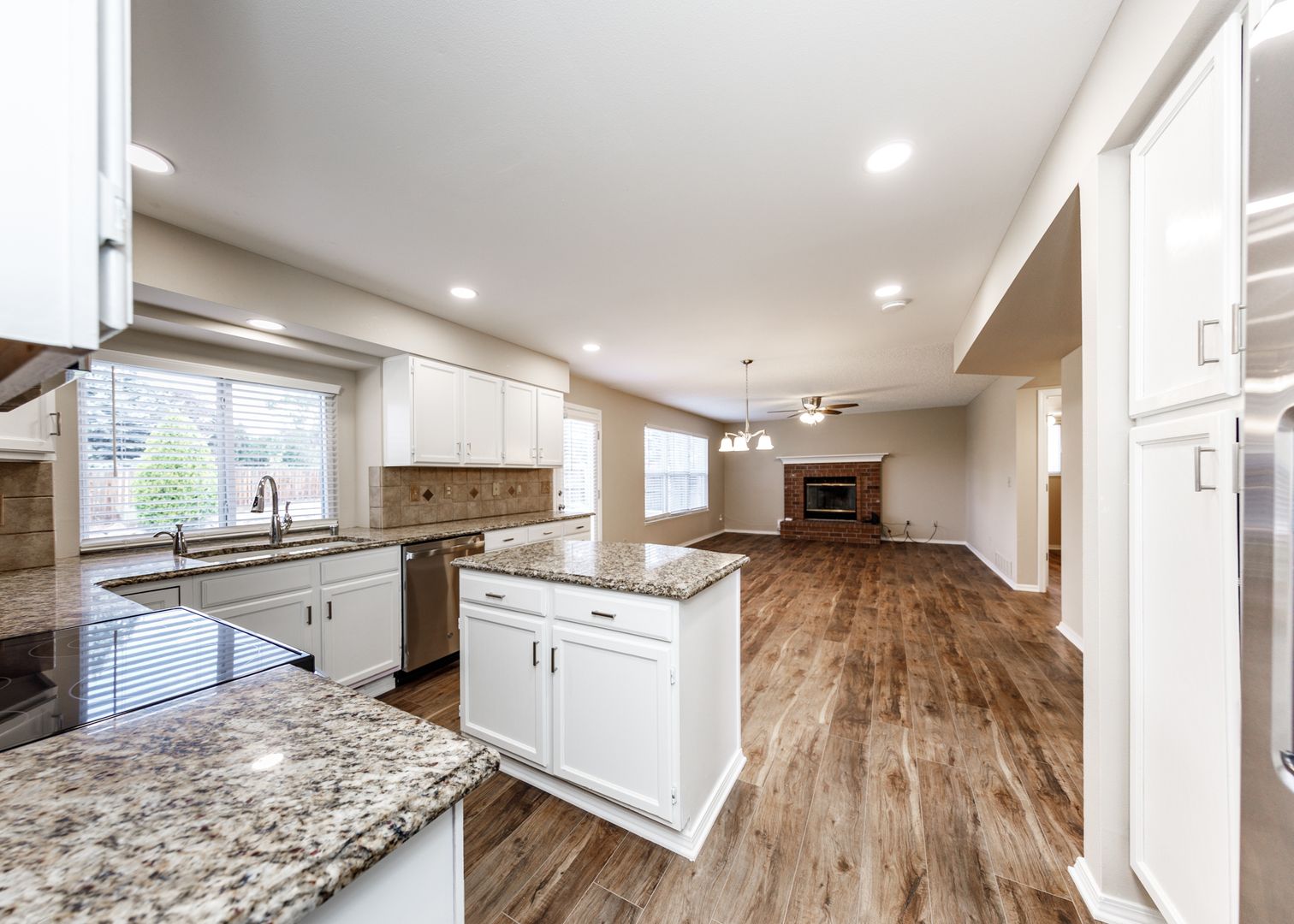 The fully updated kitchen boasts sleek granite countertops, abundant cabinetry, a central island, and brand new stainless steel appliances. Enjoy casual meals in the sunny breakfast nook or host gatherings in the adjoining formal dining room. The spacious family room offers a cozy gas fireplace, new ceiling fan, and open-concept layout ideal for modern living.