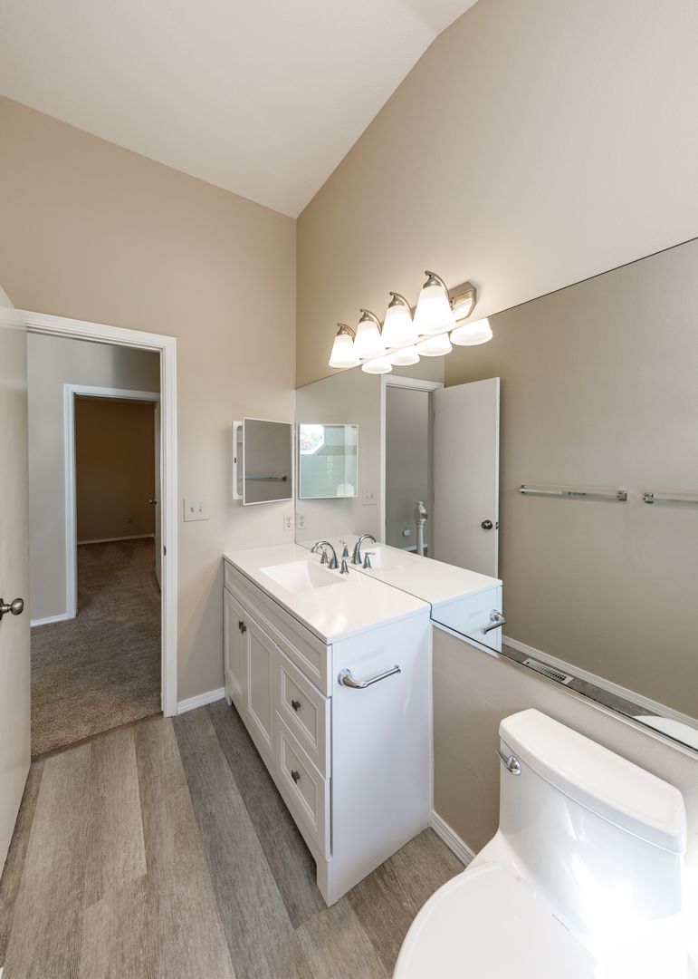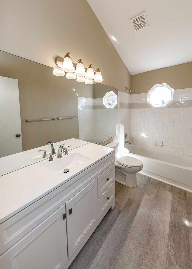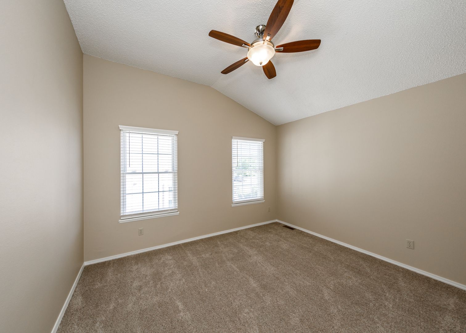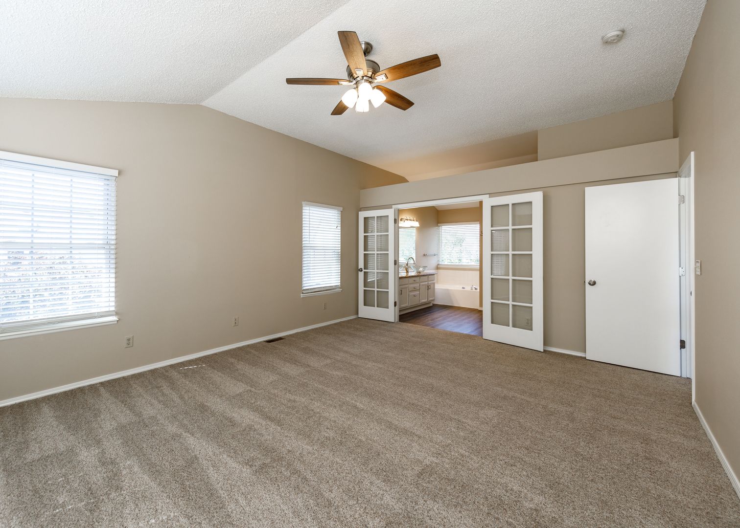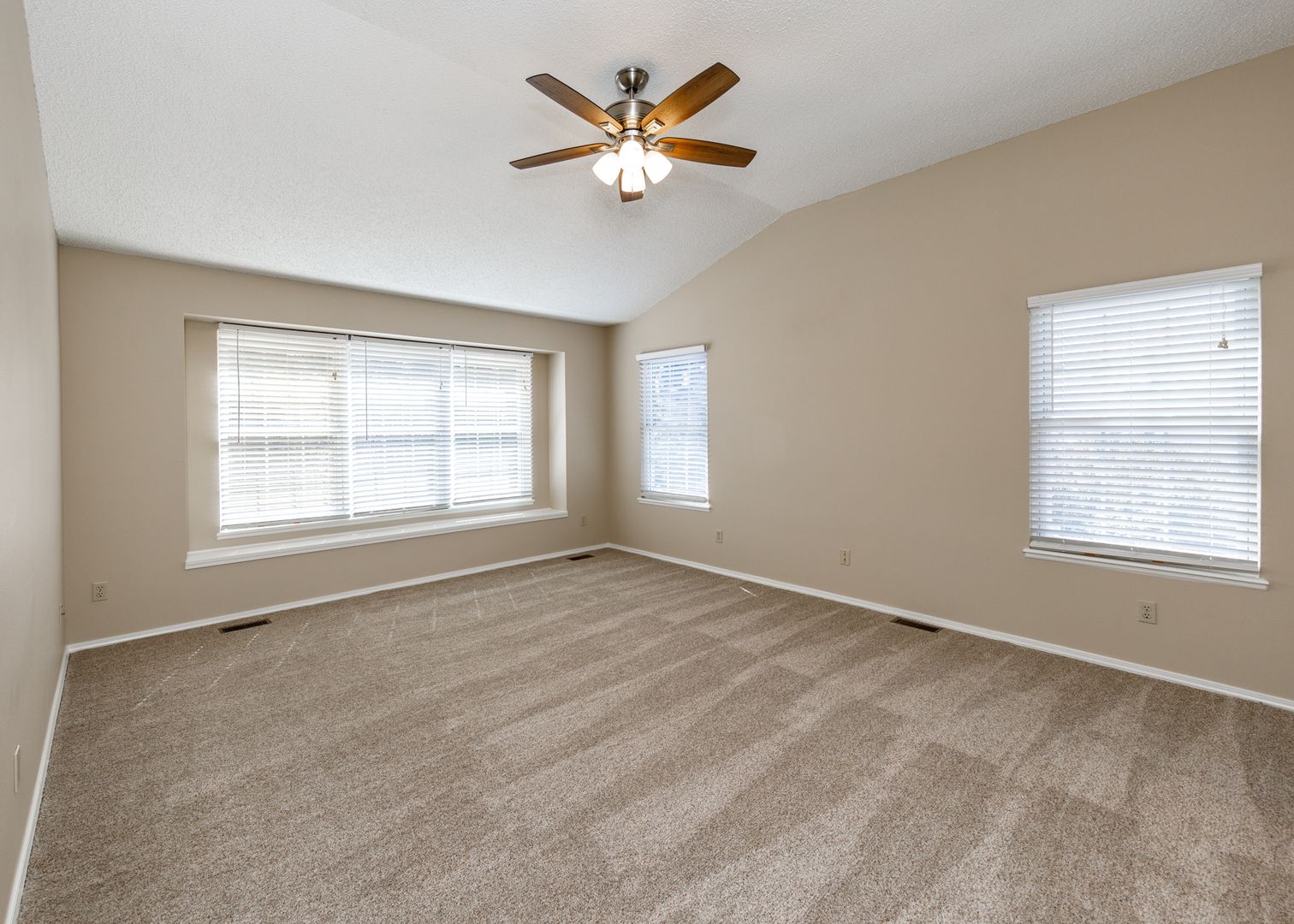 Down the hall, you'll find three additional large bedrooms, each with vaulted ceilings, ceiling fans, and generous closets, sharing a beautifully appointed full bath.