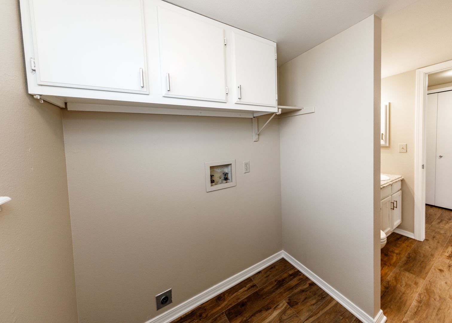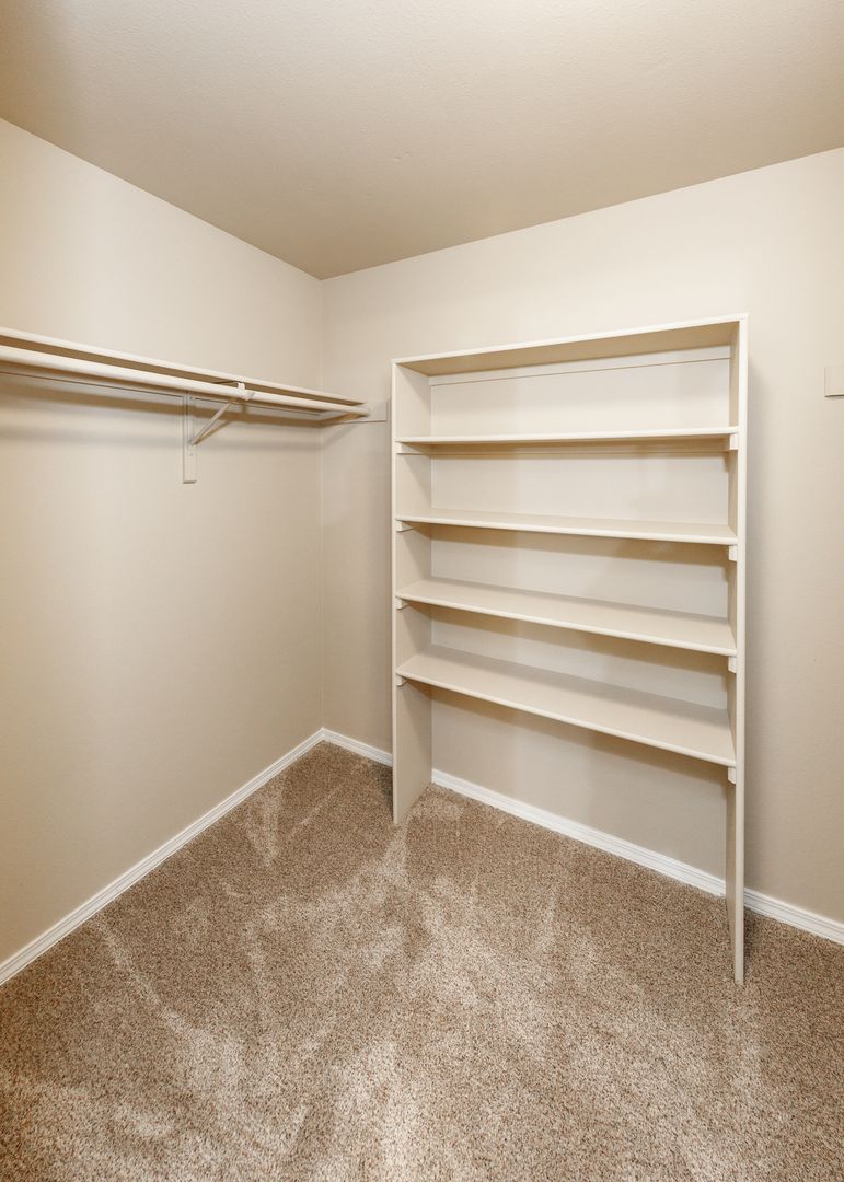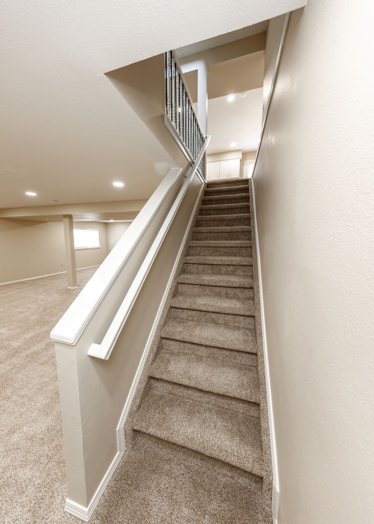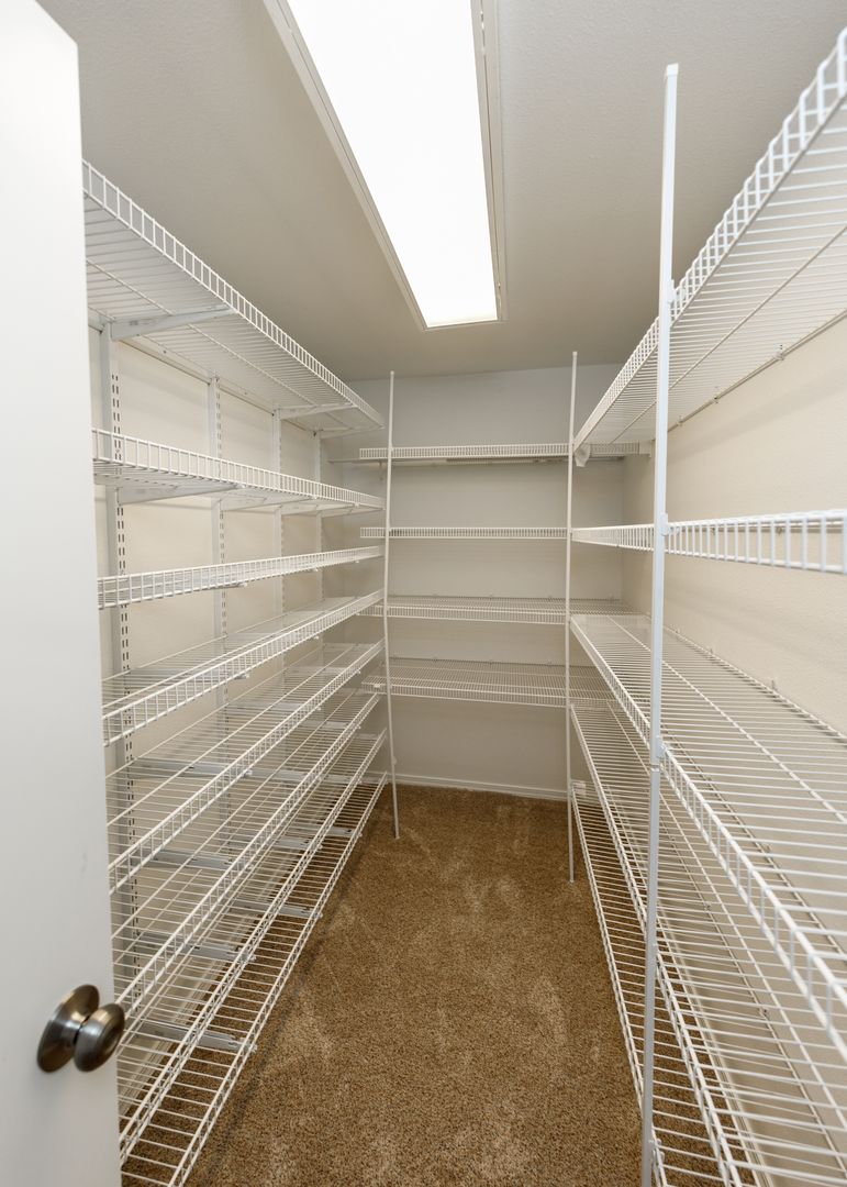 A convenient half bath, large laundry room, and access to the oversized 2-car garage (with built-in shelving!) complete the main level.