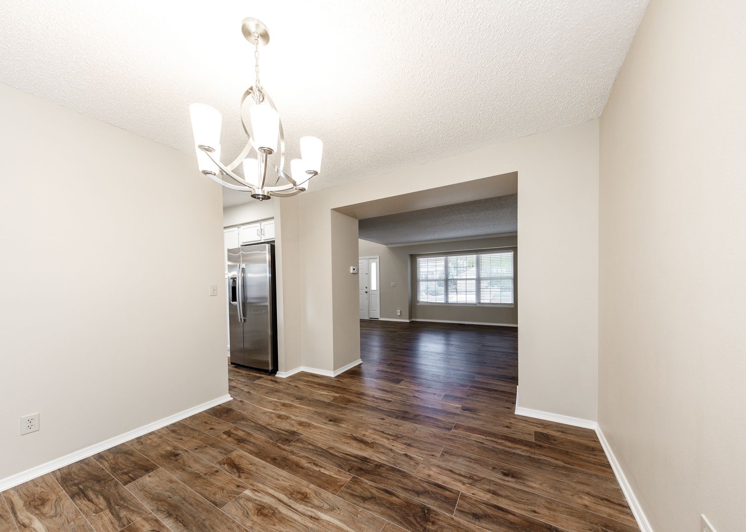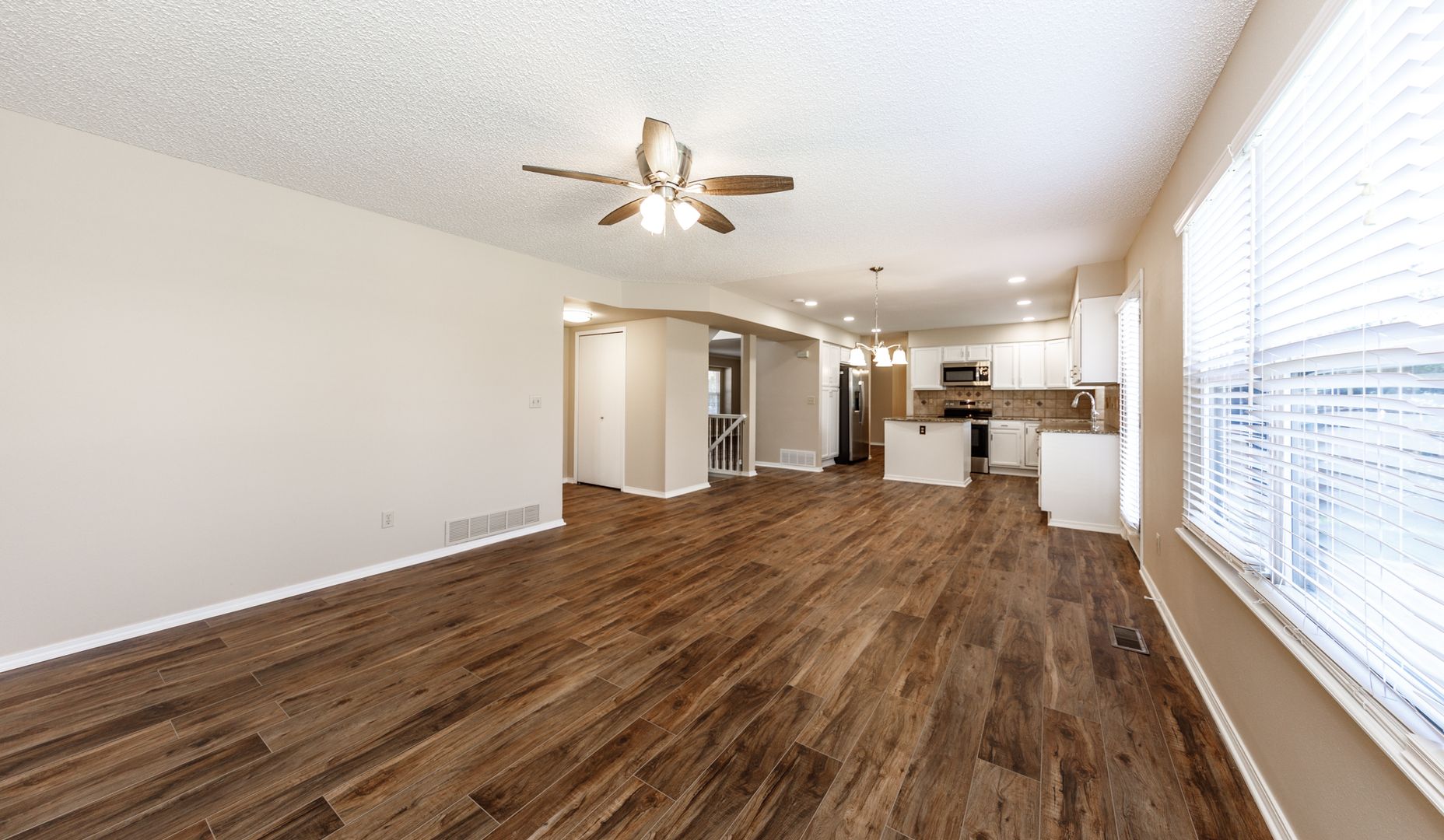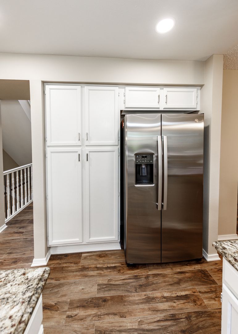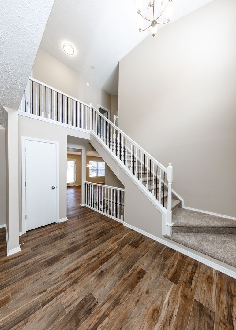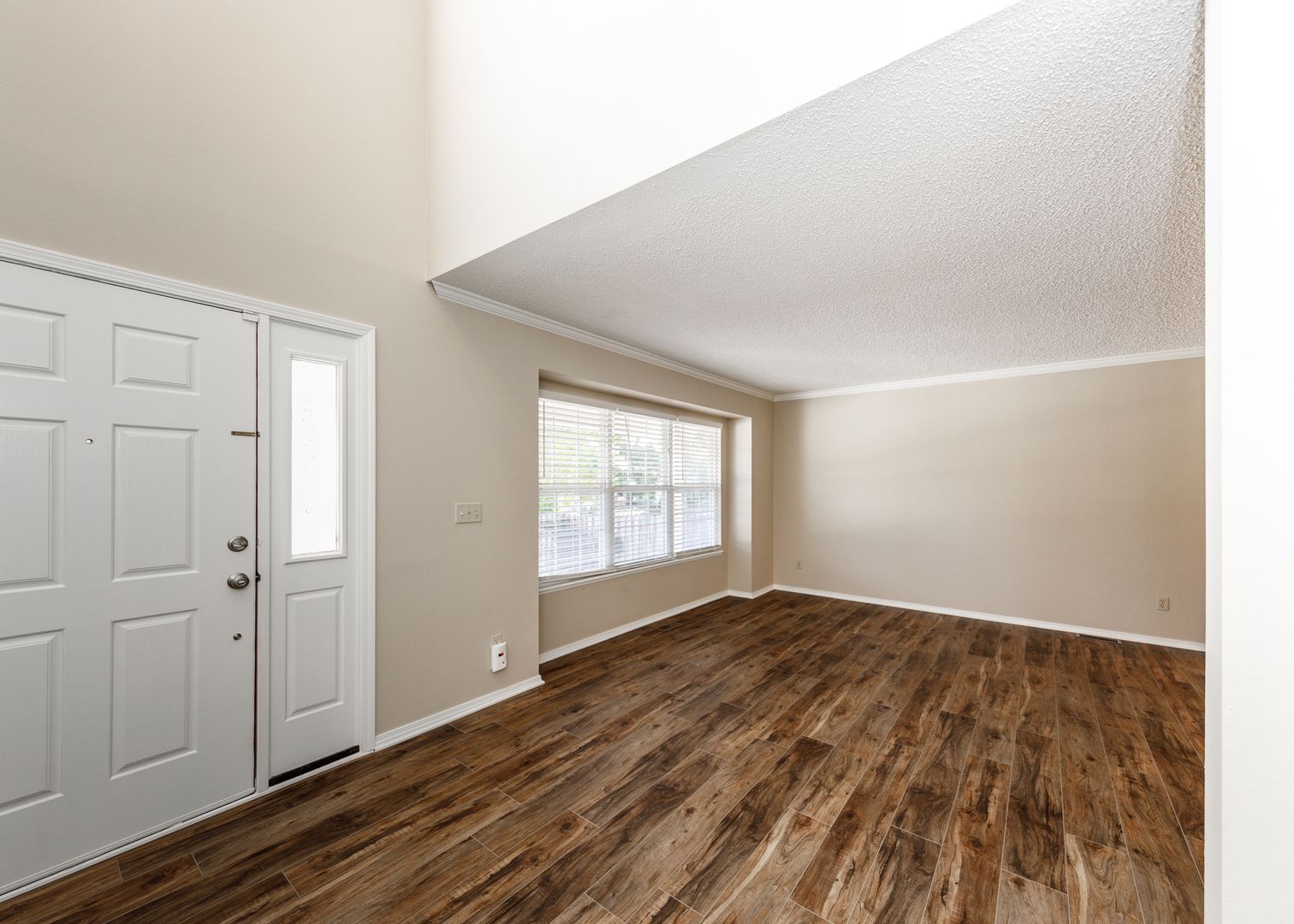 Step inside to a welcoming entryway featuring soaring two-story ceilings, brand new luxury vinyl plank (LVP) flooring, and a grand staircase with fresh carpet. To your left, a formal living room with crown molding and a coat closet offers the perfect space for entertaining, while straight ahead you'll find the heart of the home.