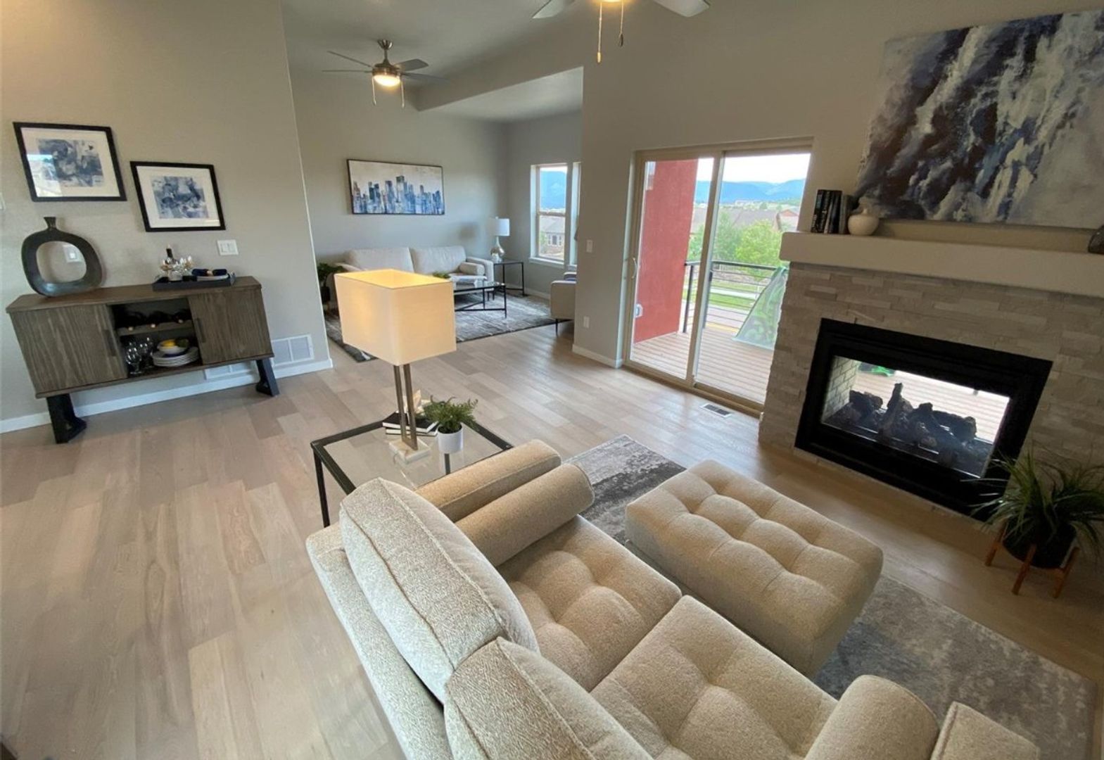 This stunning luxury residence, nestled in the exclusive Flying Horse Golf Club community, is ready to welcome you home! Enjoy the ultimate in maintenance-free living with this beautifully designed townhome, featuring an open-concept layout and 10-foot ceilings on the main level that create an airy, spacious atmosphere. The gourmet kitchen is a true showpiece, featuring premium quartz countertops, sleek stainless steel appliances, an island for meal prep and gathering, a large walk-in pantry, and gas range. Every detail has been carefully considered, from the designer tile backsplashes in the bathrooms to the luxury shower in the primary bath, beautiful stacked stone gas fireplace. Boasting 4 bedrooms, 3 on the top floor and 1 in the basement, and 4 bathrooms, this home offers ample space for both comfort and privacy, with a thoughtfully designed floor plan that includes a finished walkout basement with 9-foot ceilings, bedroom, and full bath. Additional upgrades include beautiful luxury vinyl plank flooring throughout, a bonus loft perfect for an office or extra living space, and picture windows that flood the home with natural light while framing breathtaking views of Pikes Peak and the majestic Rocky Mountains. The attached 2-car garage provides convenience and additional storage space. Step outside to your private covered composite deck with a natural gas stub out for grill ideal for relaxing or entertaining while taking in the stunning scenery. With every detail meticulously crafted and upgraded, this home offers an unparalleled lifestyle in one of the most desirable communities. Let the HOA clear the snow, garbage, and maintain the landscaping for you! Don’t wait—schedule a showing today before this one is gone!