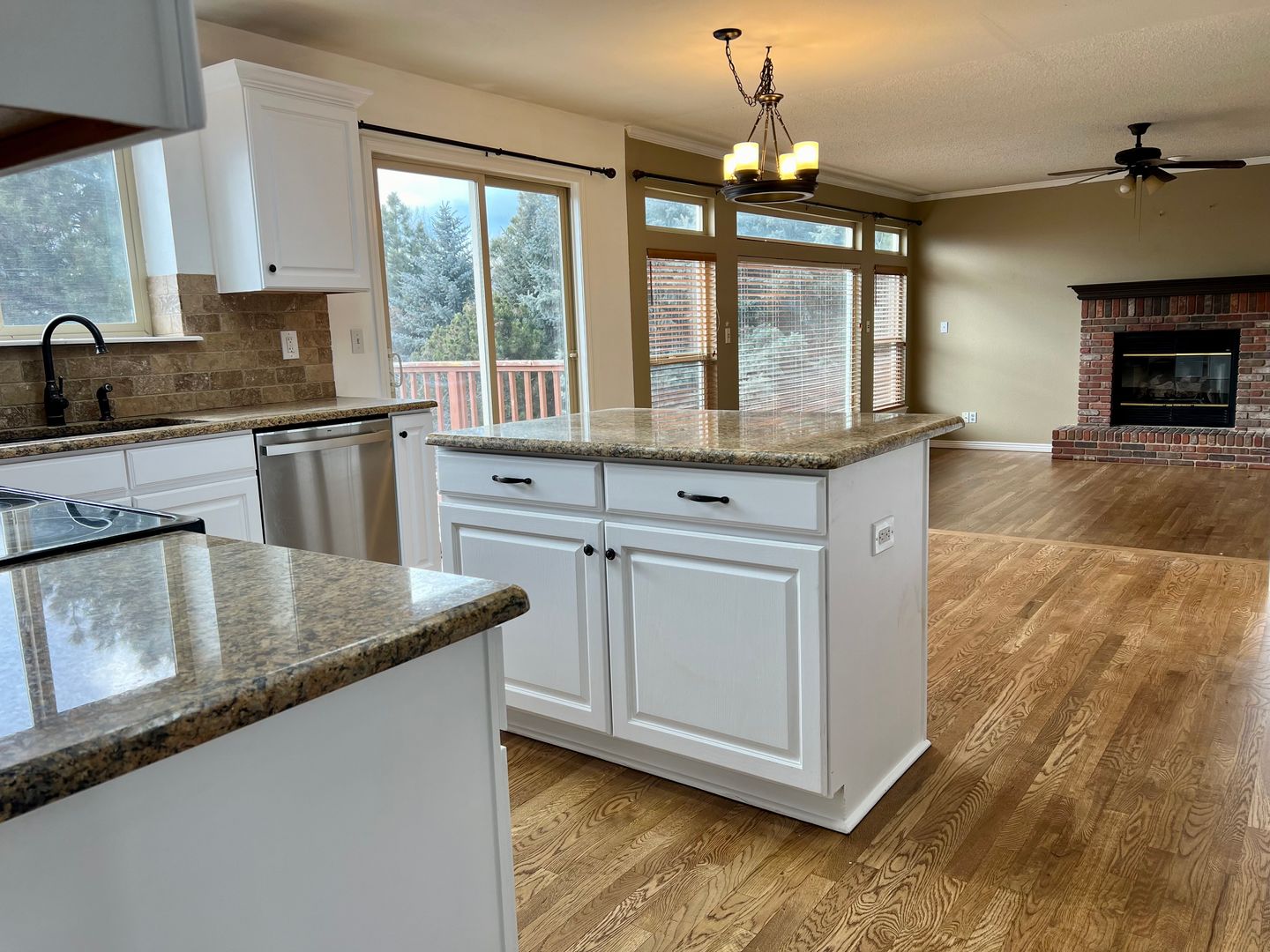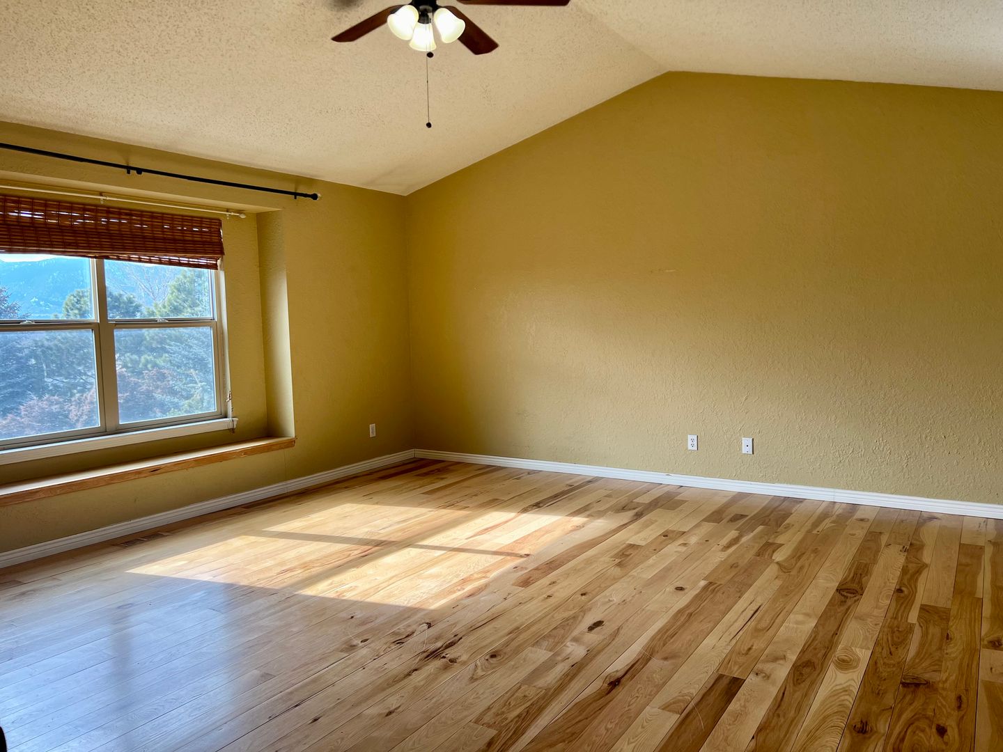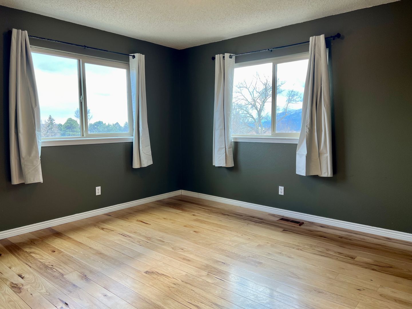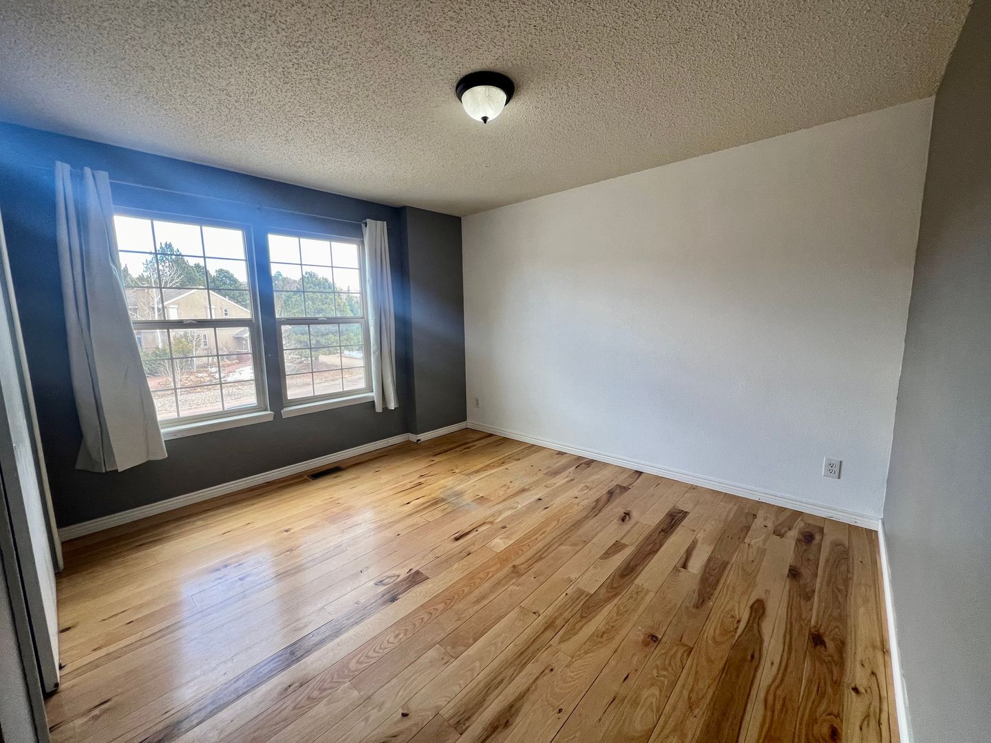 This upgraded two-story home in Gleneagle offers stunning Front Range views, including a spectacular look at the Air Force Academy, and sits on a rare double-size lot. From the moment you step into the elegant entry, you’ll notice the extensive updates throughout, including fresh interior and exterior paint, newer vinyl windows, six-panel doors, and beautifully refinished dark oak floors in the kitchen, family room, and entry. Hickory floors extend throughout the upstairs bedrooms and hall, adding warmth and character. The home also features updated light fixtures, including several ceiling fans.