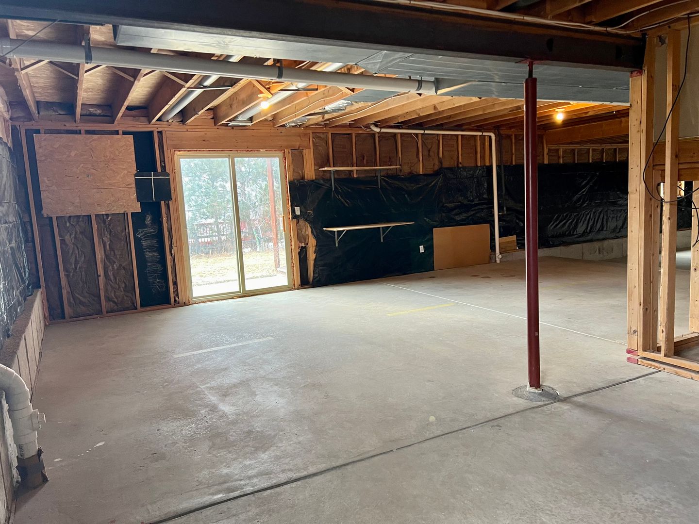 The kitchen is both stylish and functional, showcasing granite countertops with a brick tile backsplash, refurbished antique cabinets with crown molding, stainless steel appliances, a pantry, a center island with breakfast bar, and a convenient planning desk. Step outside to take in the incredible views from the multi-level deck, perfect for relaxing or entertaining. The open great room design creates a spacious feel in the family room, highlighted by hardwood floors, a gas fireplace, and a full wall of windows overlooking the lush green backyard with mature trees and sweeping mountain views. A main-level half bath has been tastefully updated with a new tile floor and faucets. Upstairs, the expansive primary suite features vaulted ceilings and space for a sitting area, where you can unwind while enjoying the breathtaking Front Range scenery. The basement is unfinished which provides ample space for storage. 2 car oversized garage adds more space for storage.