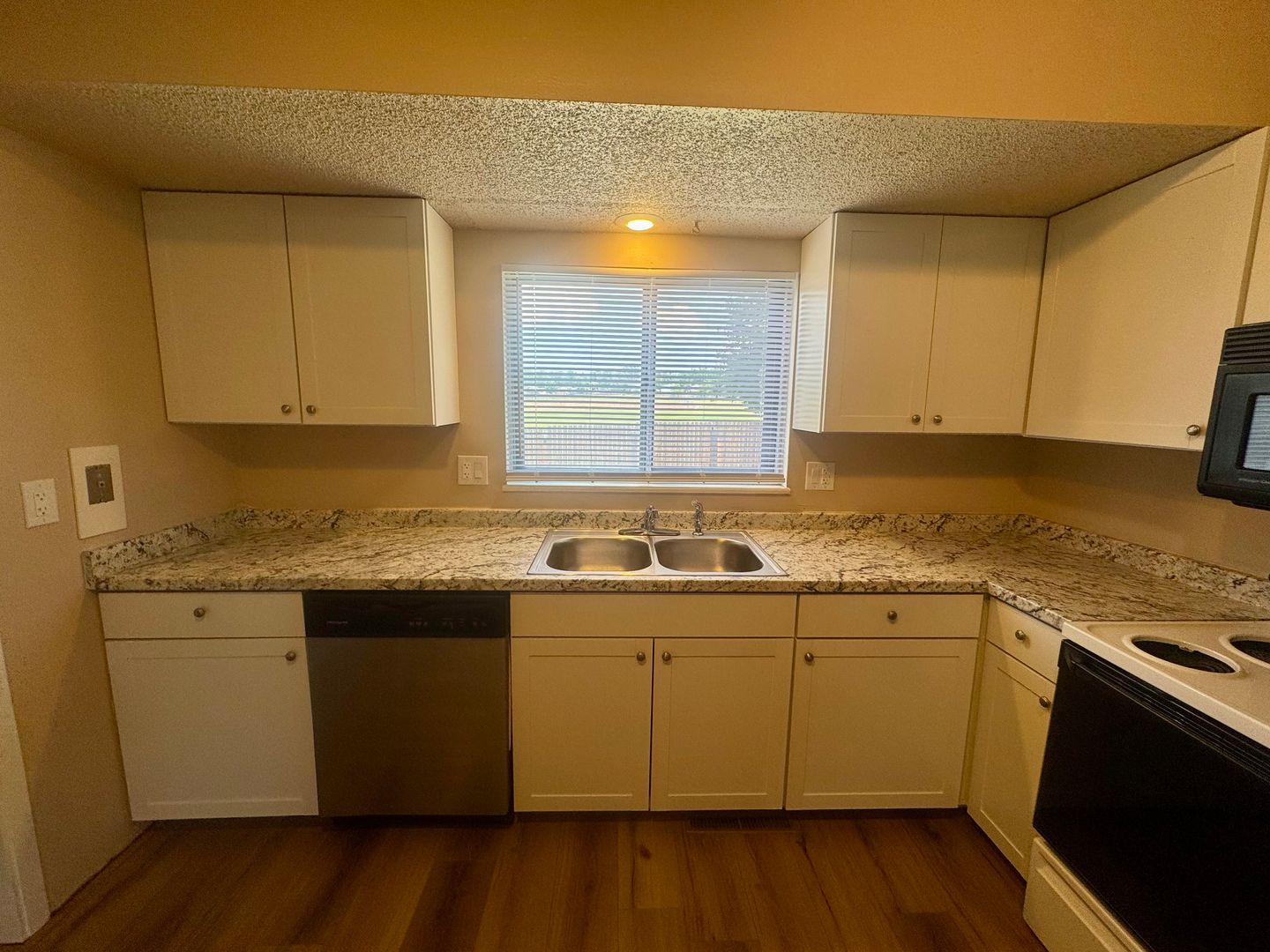 The kitchen has new countertops, soft close drawers and is equipped with quality appliances and plenty of room for cooking and gathering. Just off the kitchen, you'll find a large living and dining room space.