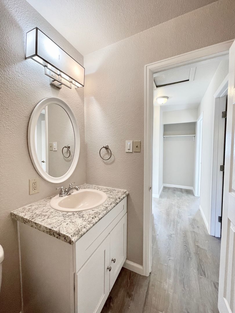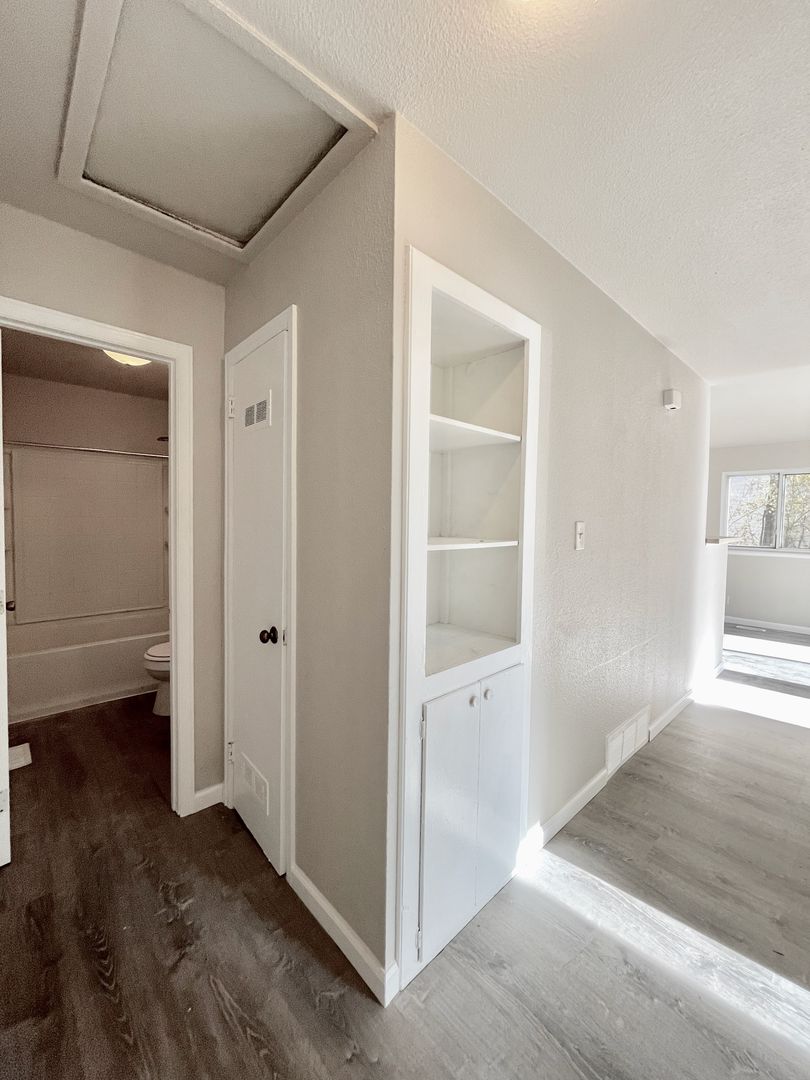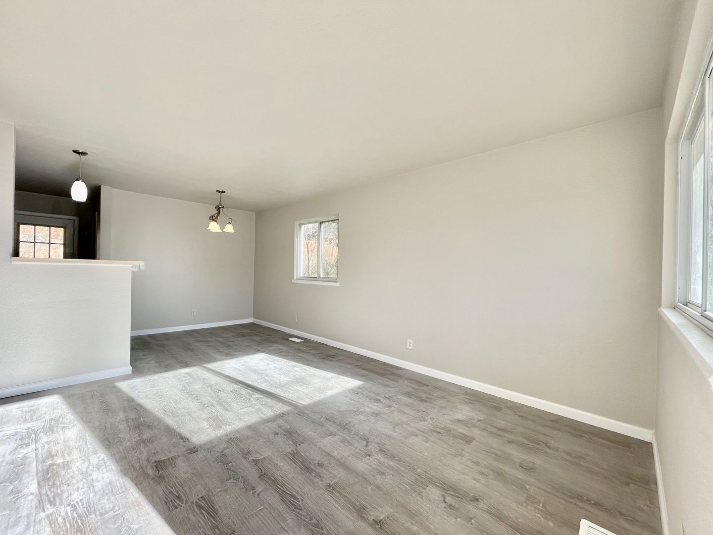 Living room opens to a spacious kitchen with neighboring laundry room with washer and dryer hook ups.