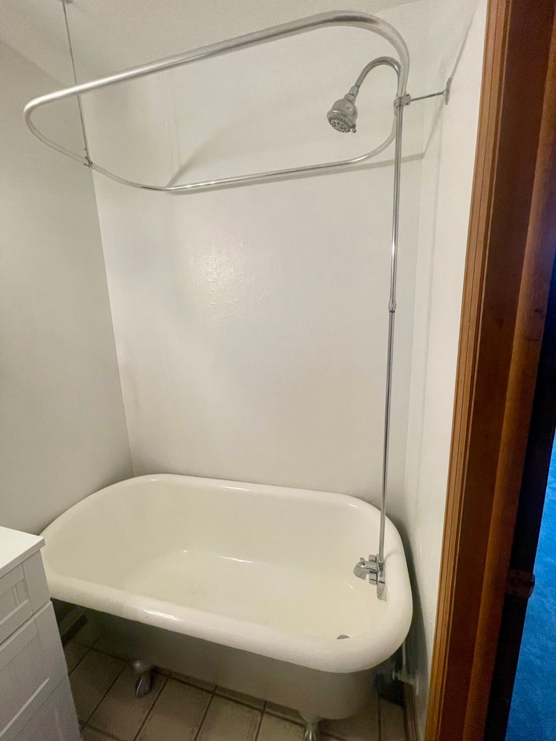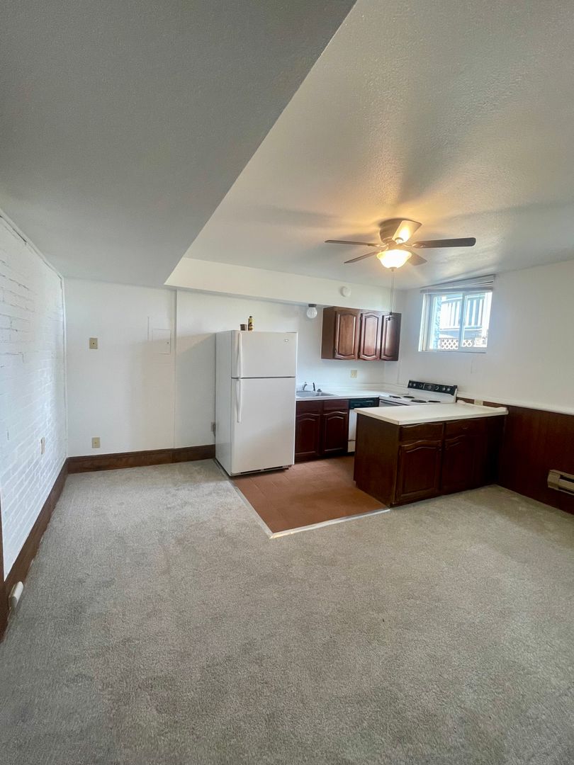 This apartment is in the lower level of a converted Victorian. Open living room with kitchen. Separate bedroom and bathroom. About 800 sq feet.