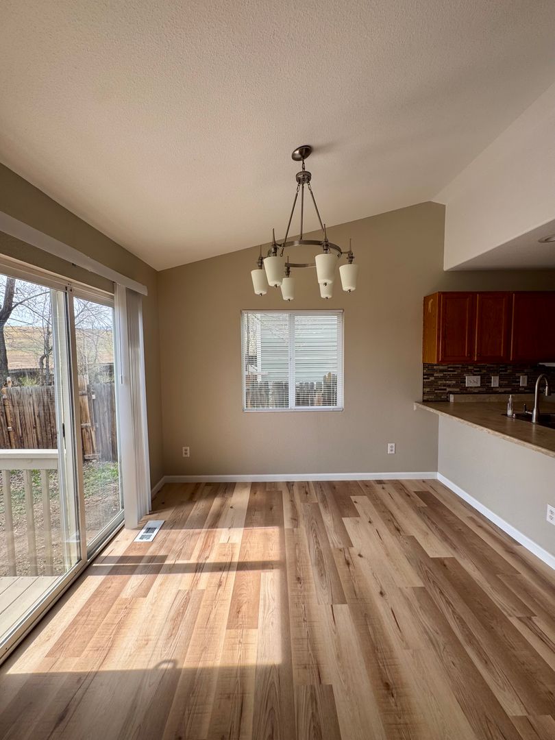 Wonderful newer home in Stratmoor Valley. Stucco and rock exterior with a full two car attached garage. Laminate wood flooring and tile, plus upgraded light fixtures. Three bedrooms and three bath rooms with a master en-suite. The third bedroom does not have a closet and would make an excellent office. Kitchen has a breakfast bar, beautiful back splash, tile floors, gas range, open floor plan and all NEW appliances are being installed this week. Great room area walks out to the south facing fenced back yard which backs up to a natural area. Don't miss out on this home... It wont last long!