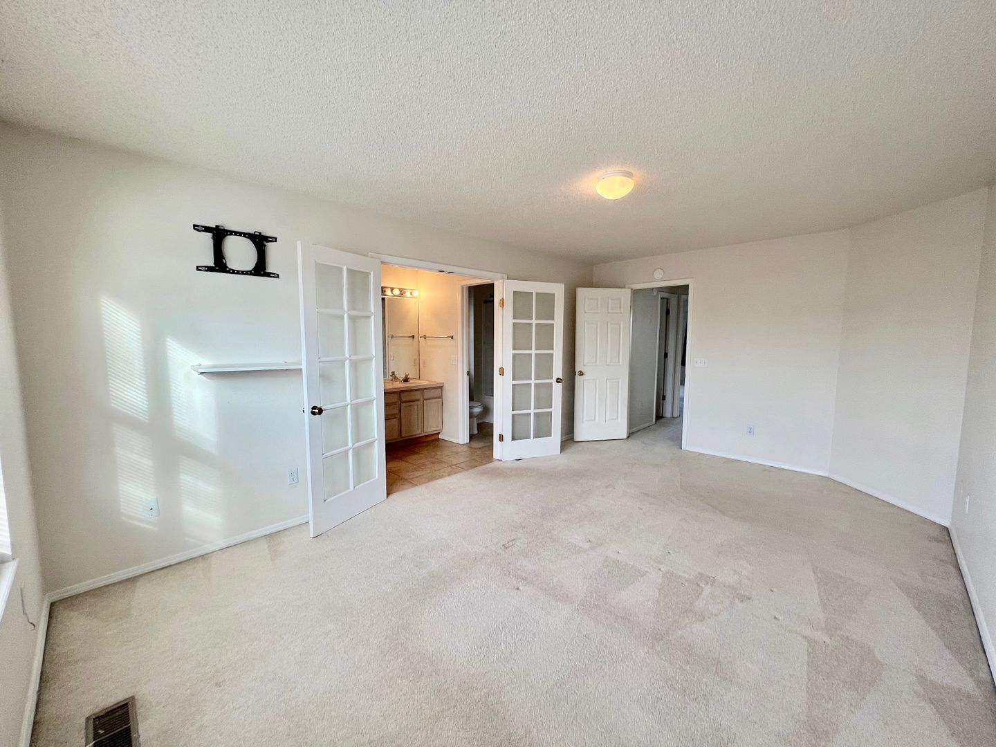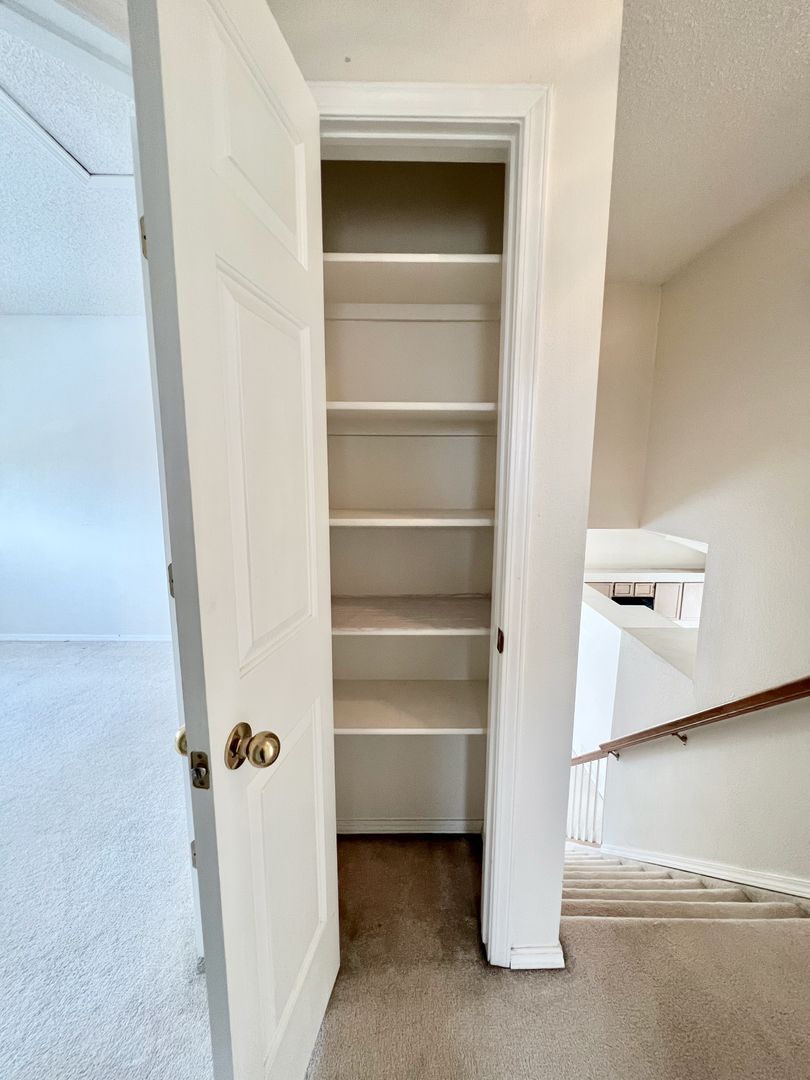 The master bedroom with private bath and two additional bedrooms with shared bath are located on the upper level