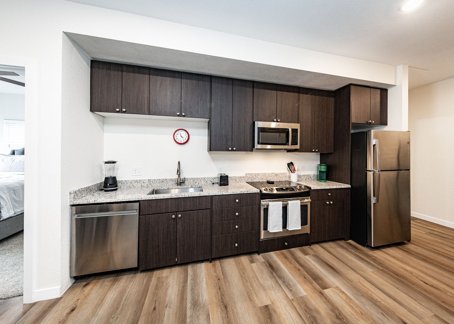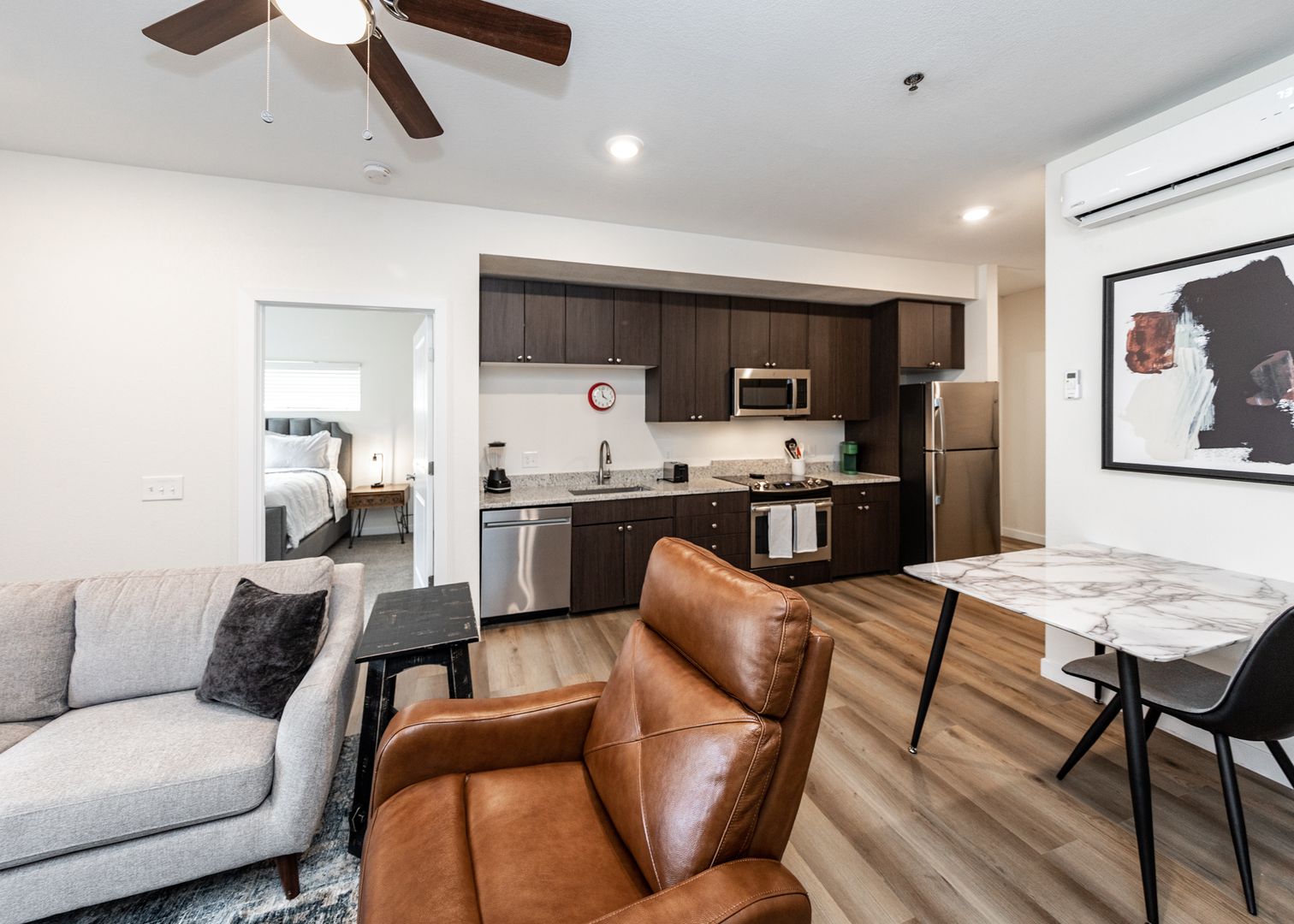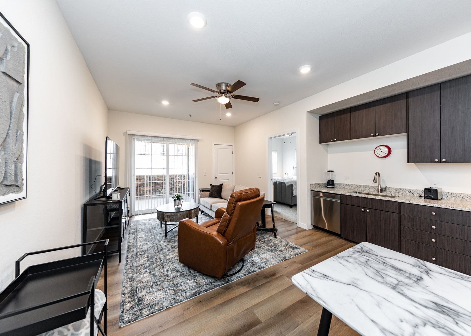 Cozy 1 bedroom 1 bath contemporary apartment under 3 miles from the world famous Garden of the Gods. This luxury apartment has it all with stainless steel appliances, granite countertops, 42" soft close cabinets, panty, 9' ceilings, luxury vinyl plank flooring in main living areas, ceiling fans, fully electric A/C and heat, and a washer and dryer. The bedroom is spacious, connected to a big walk-in closet attached with washer and dryer in it, and a nice bathroom with lots of storage space. Enjoy evening drinks on your private balcony with additional storage space overlooking Mountain Shadows open space. The outdoor enthusiast will love this location with Ute Valley Park only .4 miles from back door, Mountain Shadows Open Space only 600 ft from front door, and the famous Garden of the Gods Park not even 3 miles away. Bring your Mountain Bike and take off. Great location in a very quiet neighborhood, close to restaurants, the mountains, and businesses. Furry friends are welcomed with an additional $300 pet deposit and a $35 monthly pet rent. Trash $25, Admin $20, Other Utilities $45.
