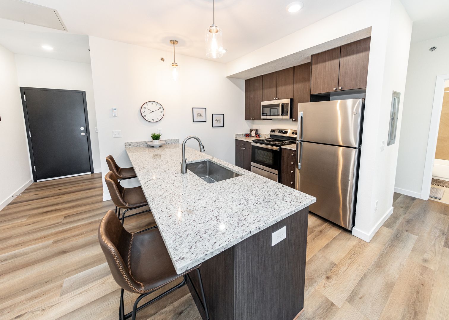 Fully furnished 2 bedroom 2 bath top floor contemporary apartment for 30 day rent periods or longer This luxury apartment has it all with stainless steel appliances, granite countertops, 42" soft close cabinets, island with 4 barstools, 9' ceilings, luxury vinyl plank flooring in main living areas, ceiling fans, fully electric A/C and heat, and a washer and dryer. The Primary bedroom has a Queen bed and luxury spa shower. The 2nd bedroom has a full bed with dedicated work space. Enjoy evening drinks on your private balcony with storage space, overlooking Ute Valley Park. The outdoor enthusiast will love this location with Ute Valley Park only .4 miles from back door, Mountain Shadows Open Space only 600 ft from front door, and the famous Garden of the Gods Park not even 3 miles away. Bring your Mountain Bike and take off. Rent includes utilities up to $100 a month, trash, and washer/dryer. Pets are welcome with an additional $35 pet rent and $300 pet deposit.