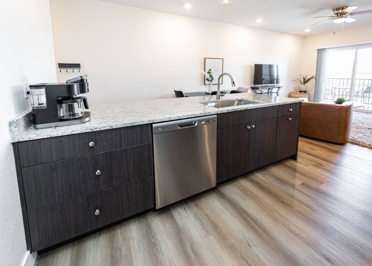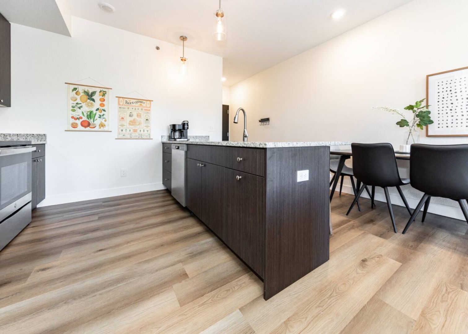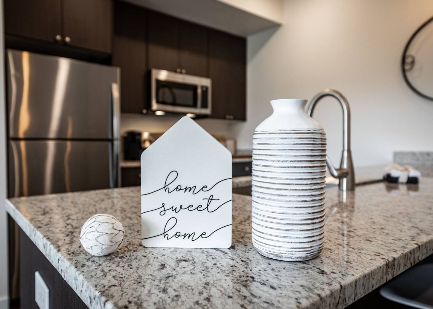 Stylish Interiors: Stainless steel appliances, granite countertops, 42″ soft‑close cabinetry, and a spacious island that seats 4.