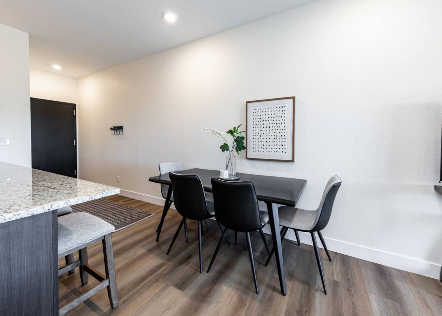 Spacious Design: 9′ ceilings and luxury vinyl plank flooring throughout the main living areas create an open, modern ambiance.