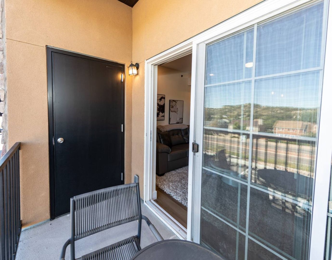 Outdoor Enjoyment: A private balcony with extra storage, overlooking Ute Valley Park—ideal for evening drinks.