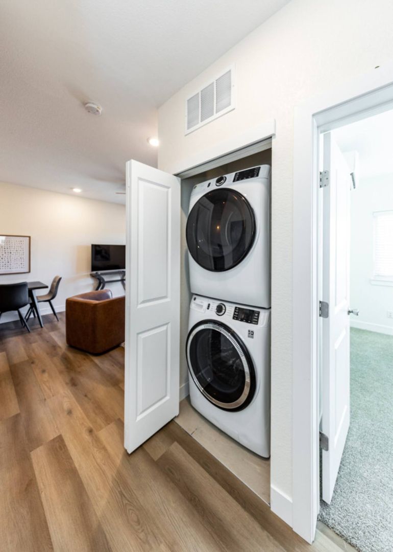 Comfort & Convenience: Ceiling fans, fully electric A/C and heat in each room, plus an in-unit washer and dryer.