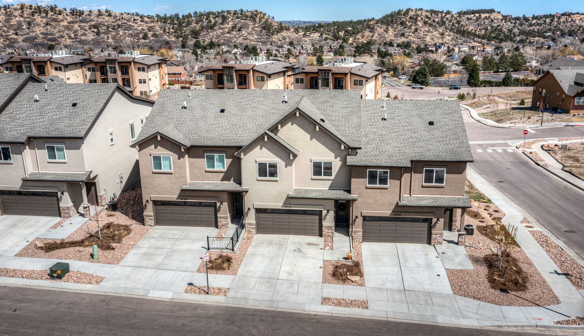 Newer Upscale, End Unit townhome in Mountain Shadows close to Ute Valley Park and Garden of the Gods. Home has tasteful finishes throughout, elevating the standard of modern living, with three bedrooms, two and half baths, and a two-car garage. The main level has luxury vinyl plank floors throughout, spacious living room with gas fireplace, powder bath, and an immaculate, bright modern kitchen with large corner pantry. The gourmet kitchen boasts top-of-the-line stainless steel appliances, gas range, sleek stone countertops, all creating a refined space for culinary creativity and entertaining. Step outside the dining room to your private deck with views of Ute Valley Park and stub out for natural gas BBQ grill. The upper level consists of carpet and tile throughout with a spacious principal suite with sitting area, complete with a generous walk-in closet and attached bathroom featuring a dual-sink vanity, spa-like walk-in shower with bench, and another walk-in closet. This serene retreat offers the ideal sanctuary for relaxation and rejuvenation. Two additional bedrooms at the other end of the hall, a full bathroom, and laundry area with washer and dryer round out the upper level, providing luxurious accommodations for family members, guests, or home offices. Convenience is yet another perk to this townhome, located just minutes from the Garden of the Gods, biking and hiking trails, shopping, food and entertainment. Enjoy maintenance free living with HOA taking care of snow removal, yard work, and Trash. Two Furry friends Max with additional pet rent $35 per pet and $300 pet deposit per pet.