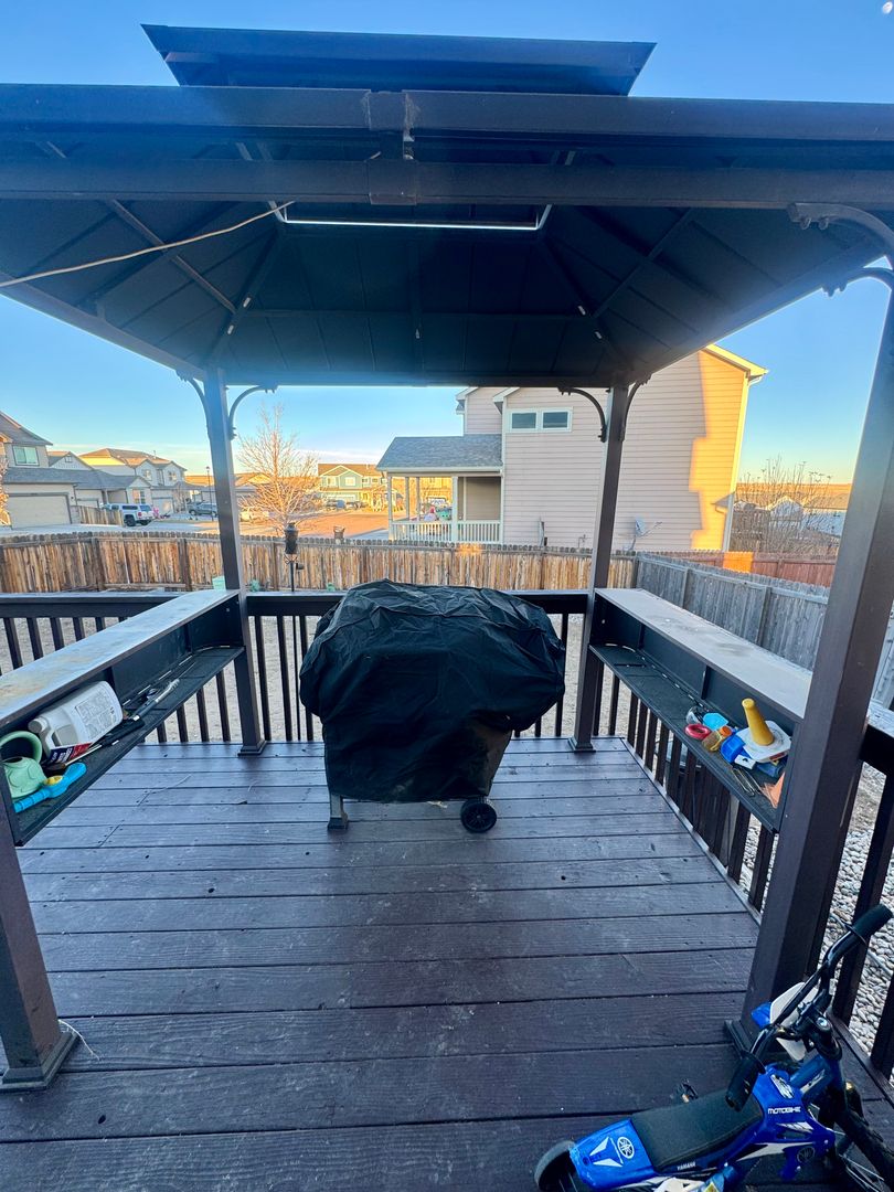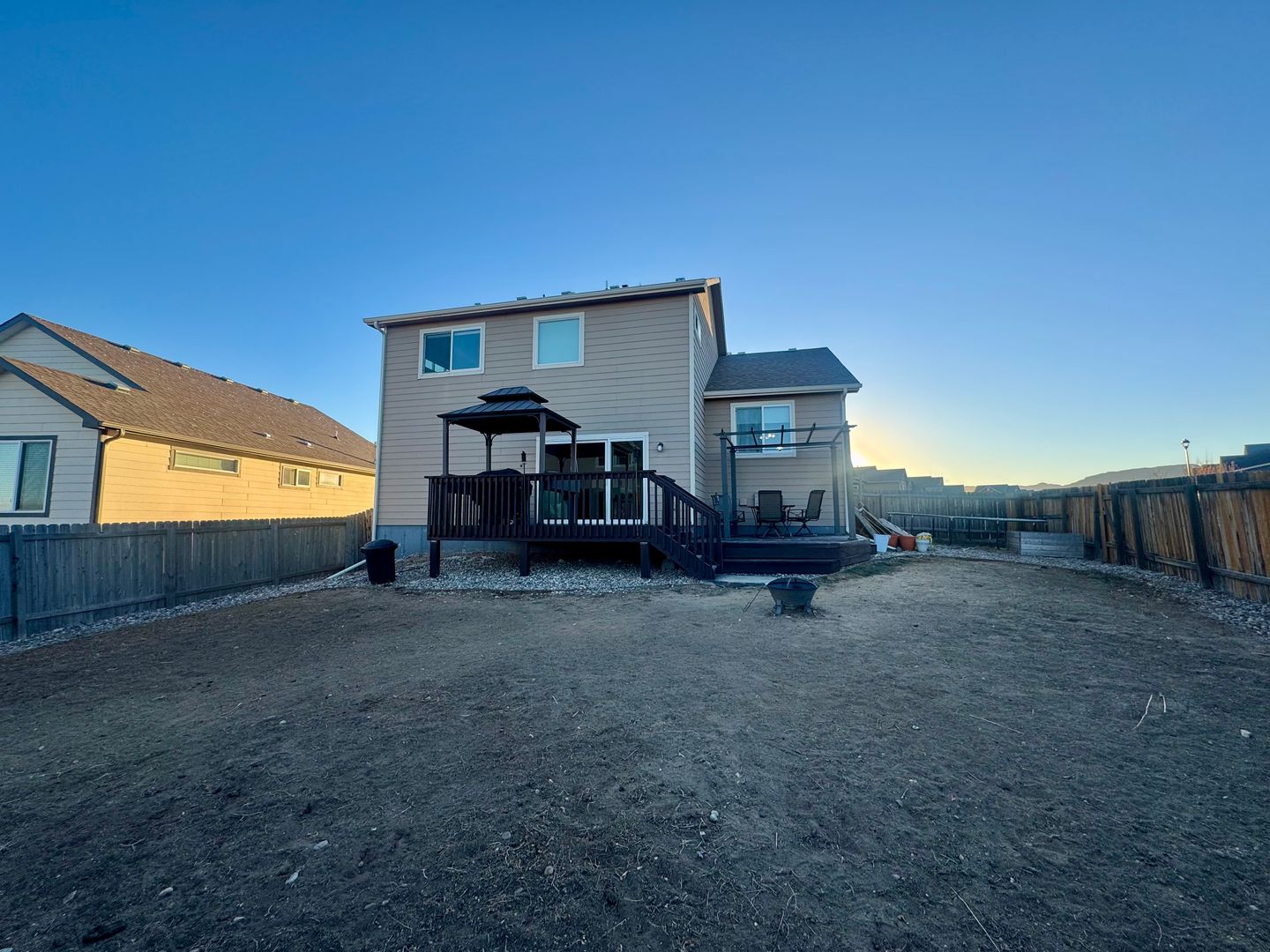 Beautiful 3 bedroom, 2.5 bathroom home with 3-car tandem garage! The kitchen boasts hardwood floors, granite countertops, tile backsplash, pantry, breakfast bar, fabulous oversized window above the kitchen sink and stainless steel appliances. Adjacent dining room with hardwood floors and formal sitting area. Downstairs living room has a slider to the back patio with large deck and pergola to relax under on those Summer nights. For the gardening enthusiast, there are 3 raised planter beds for use. Upstairs you'll find the primary bedroom, 5 piece master bath, and walk-in closet. Home features central air conditioning, 3 car tandem garage, large unfinished basement, fully fenced landscaped backyard and Smart Nest thermostat. Walk outside or jump on you bike and enjoy Bluestem Prairie open space with multiple hiking trails, Colorado living at its finest. Easy access to Ft. Carson and Peterson Air Force Base. District 3 schools. Call Amber to schedule your showing today!