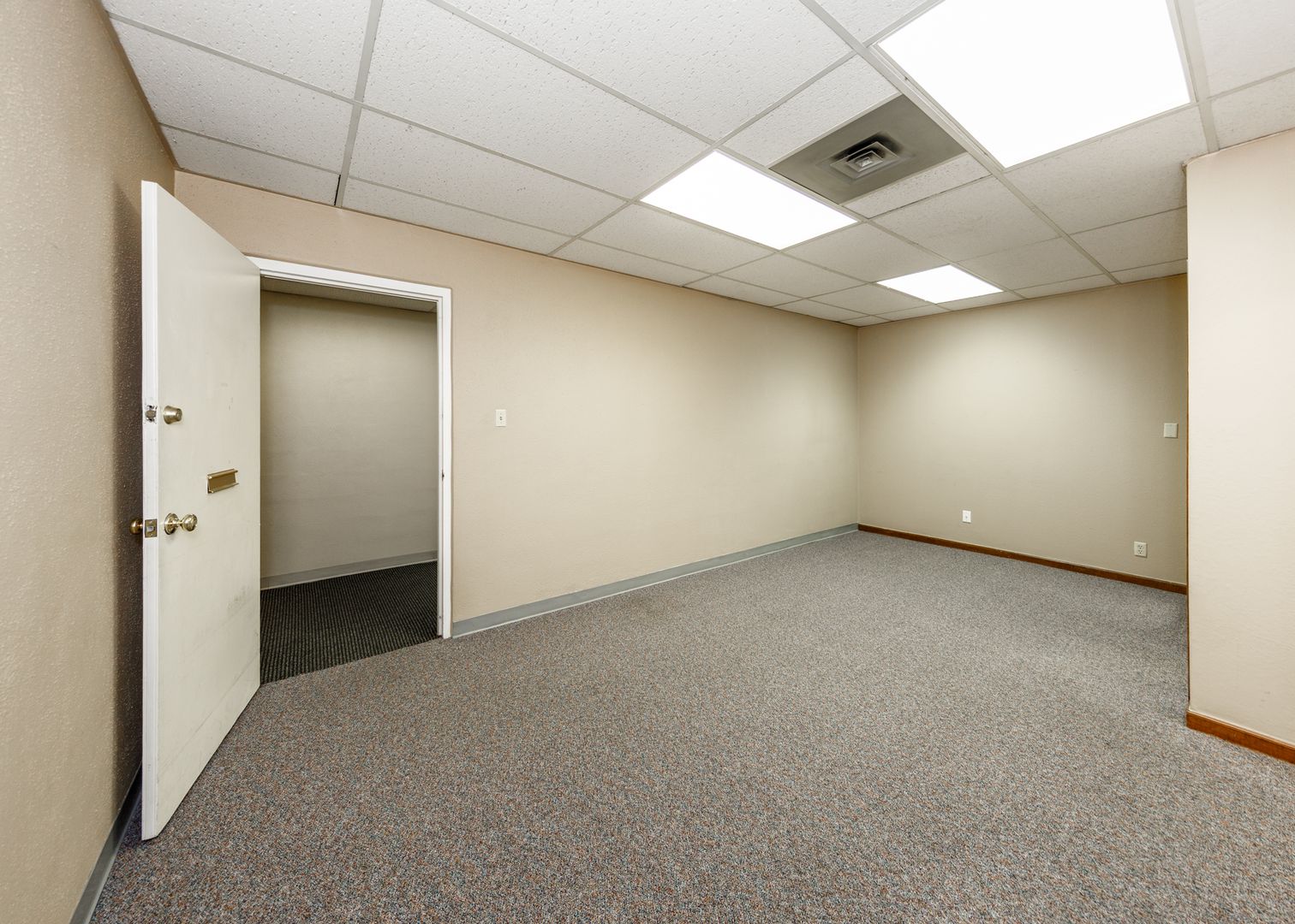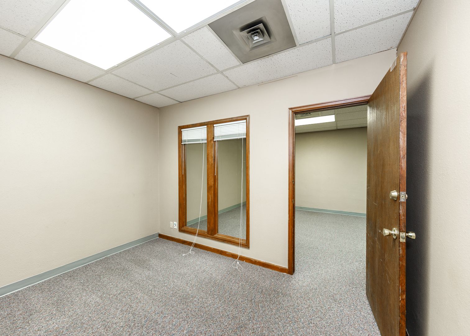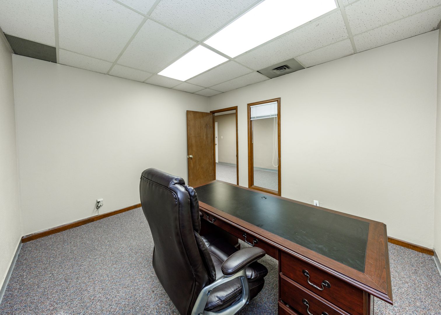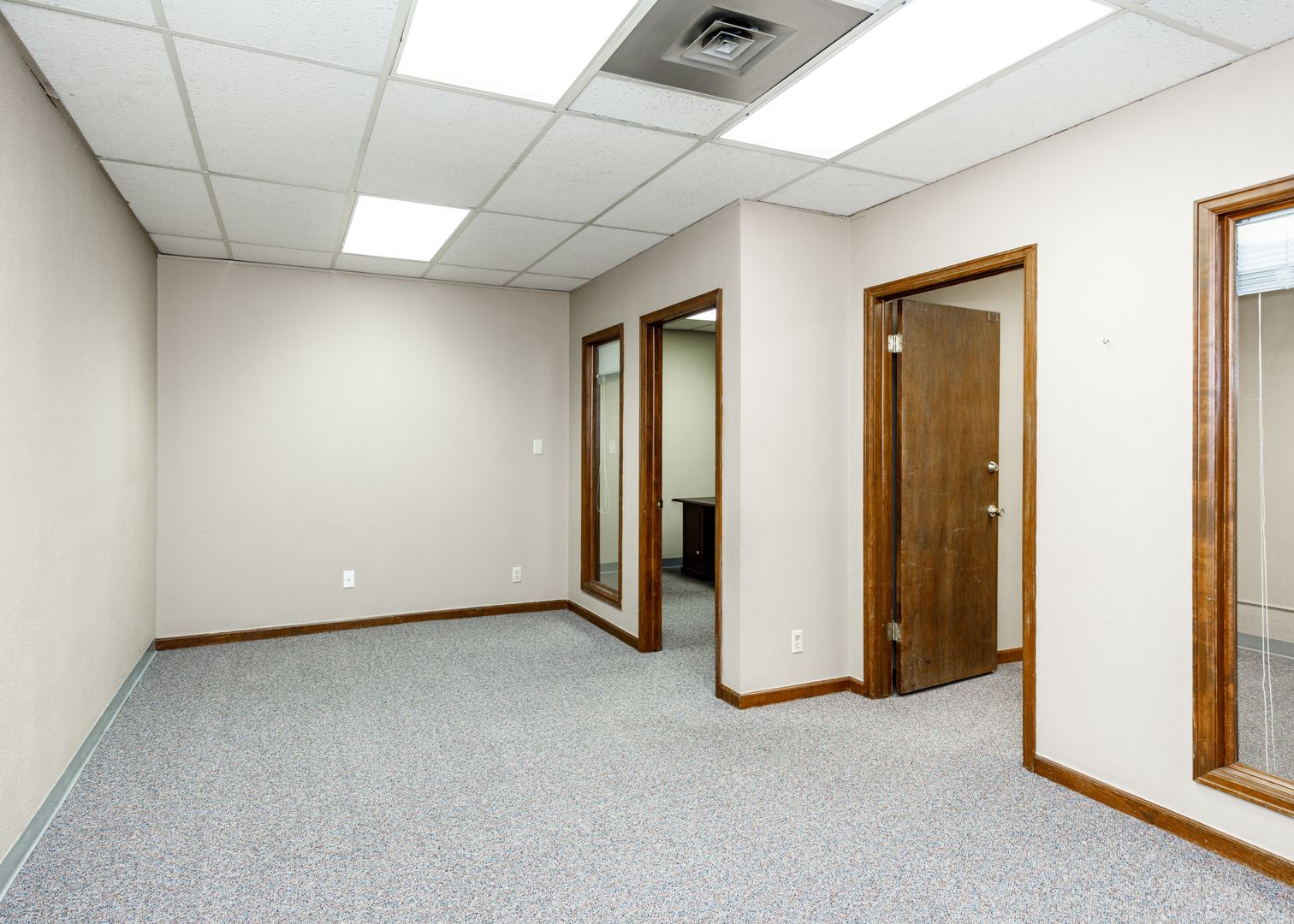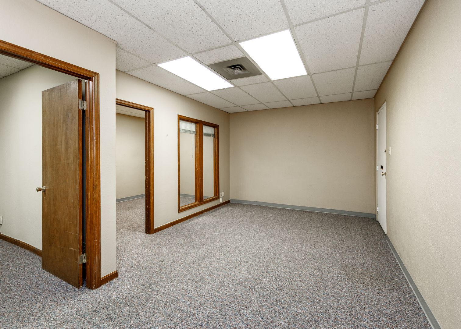 Suite B2 offers a spacious and functional layout with three rooms totaling approximately 460 square feet. The suite includes a large main room measuring 20’ x 11’, with two private offices branching off the main space. These offices feature large windows with blinds for privacy and measure 9’ x 12’ and 11’ x 12’.