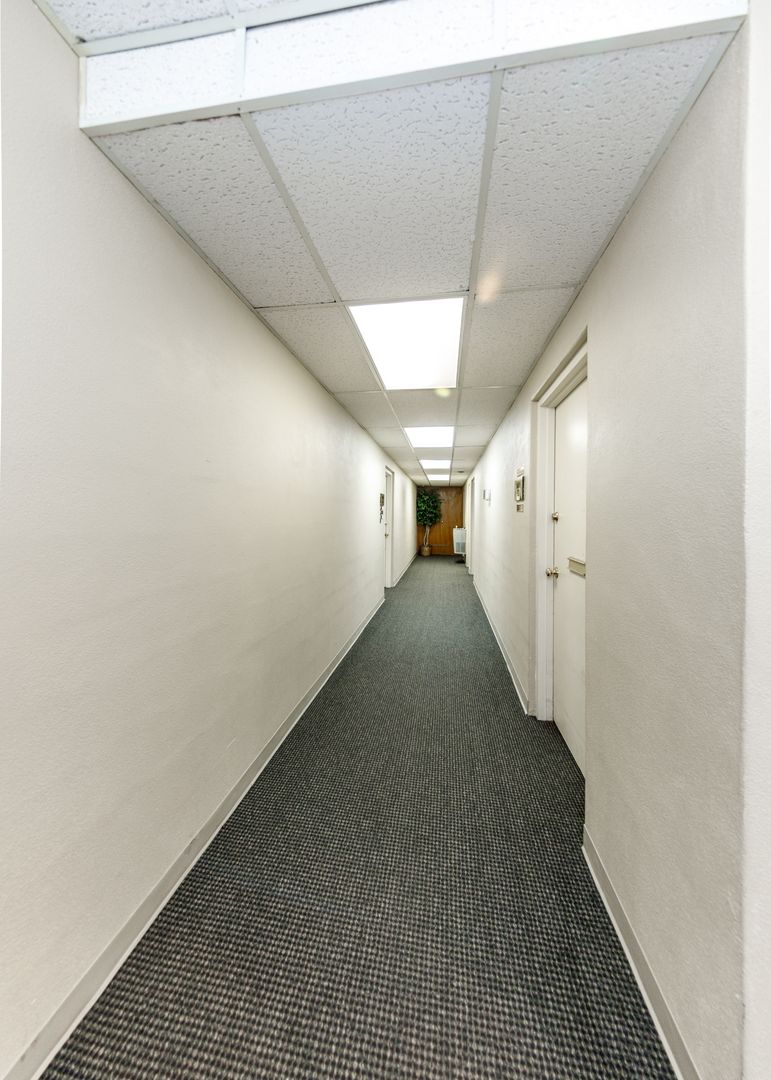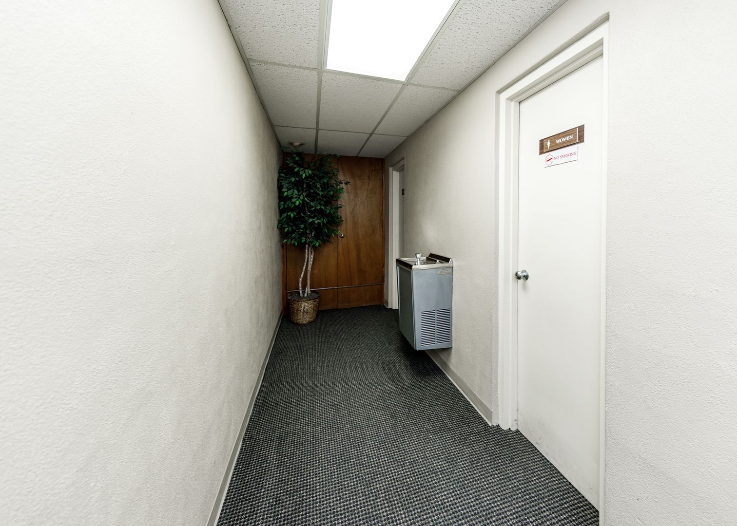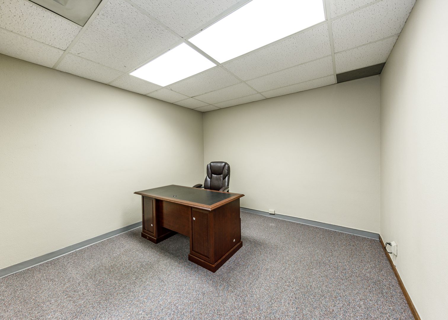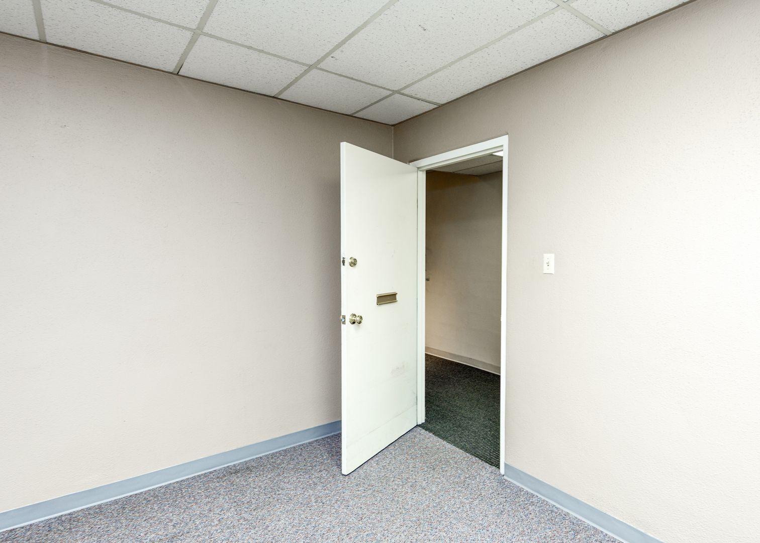 Suite B2 offers a spacious and functional layout with three rooms totaling approximately 460 square feet. The suite includes a large main room measuring 20’ x 11’, with two private offices branching off the main space. These offices feature large windows with blinds for privacy and measure 9’ x 12’ and 11’ x 12’.
