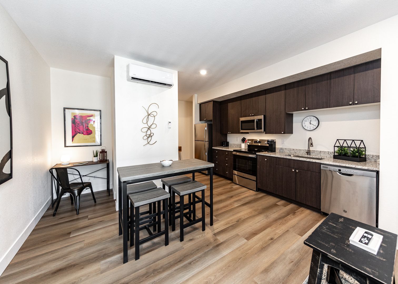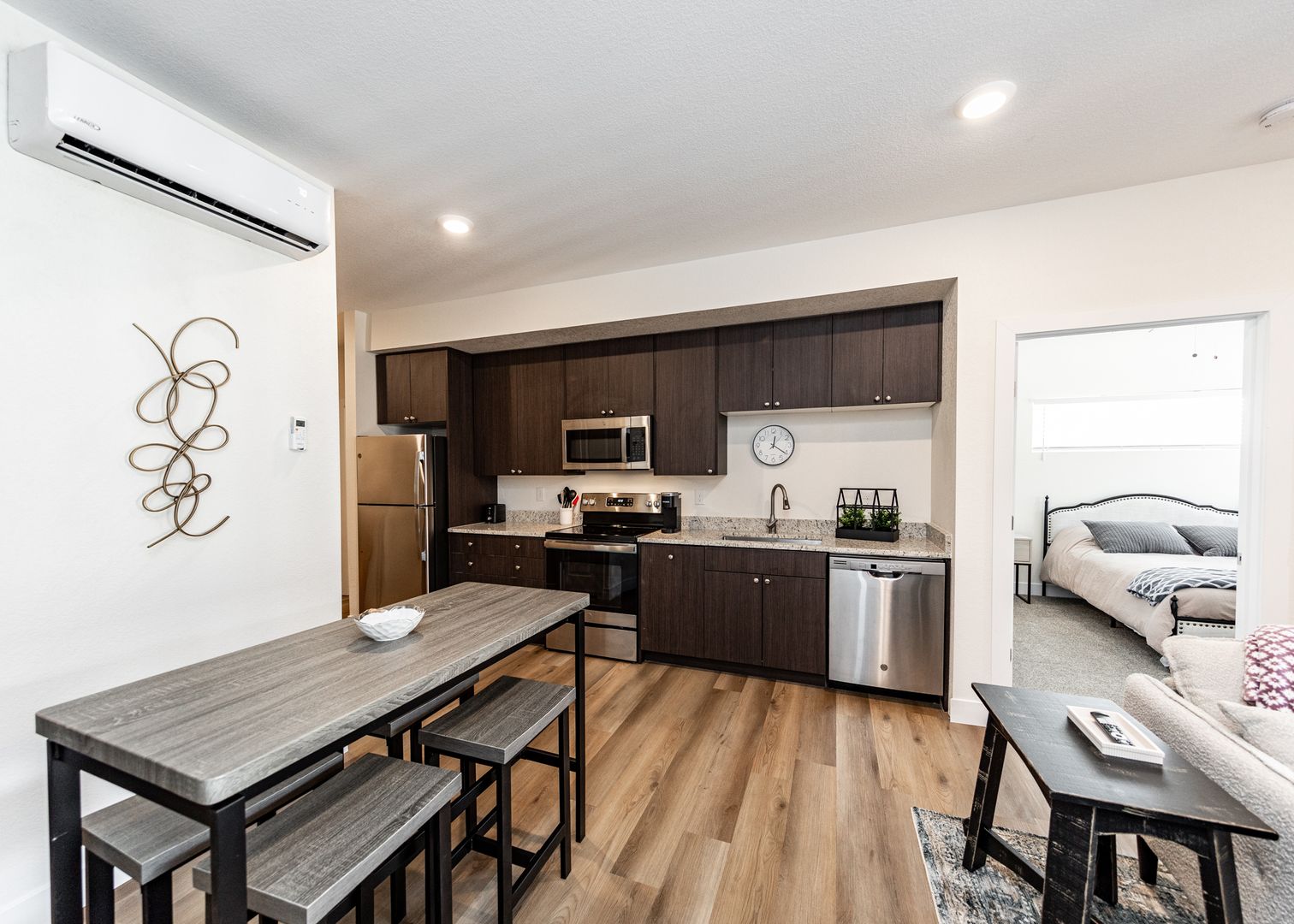 Cute, 1 bedroom 1 bath contemporary apartment under 3 miles from Garden of the Gods for 30 day rent periods or longer. This luxury apartment has it all with stainless steel appliances, granite countertops, 42" soft close cabinets, panty, 9' ceilings, luxury vinyl plank flooring in main living areas, ceiling fans, fully electric A/C and heat, and a washer and dryer. The bedroom is spacious enough for King with large walk-in closet with side by side washer and dryer, and roomy bathroom with granite countertop with tub/shower combo with lots of storage space. Enjoy evening drinks on your spacious private patio with additional storage space overlooking Mountain Shadows open space. The outdoor enthusiast will love this location with Ute Valley Park only .4 miles from back door, Mountain Shadows Open Space only 600 ft from front door, and the famous Garden of the Gods Park not even 3 miles away. Bring your Mountain Bikes and take off. Furry friends are welcomed for an additional $35 pet rent and $300 pet deposit, max 2 pets. Exterior maintenance free living. Garage rent $150 if available.