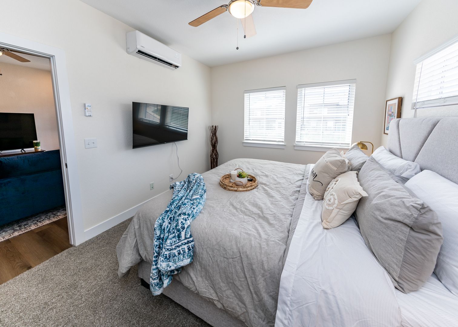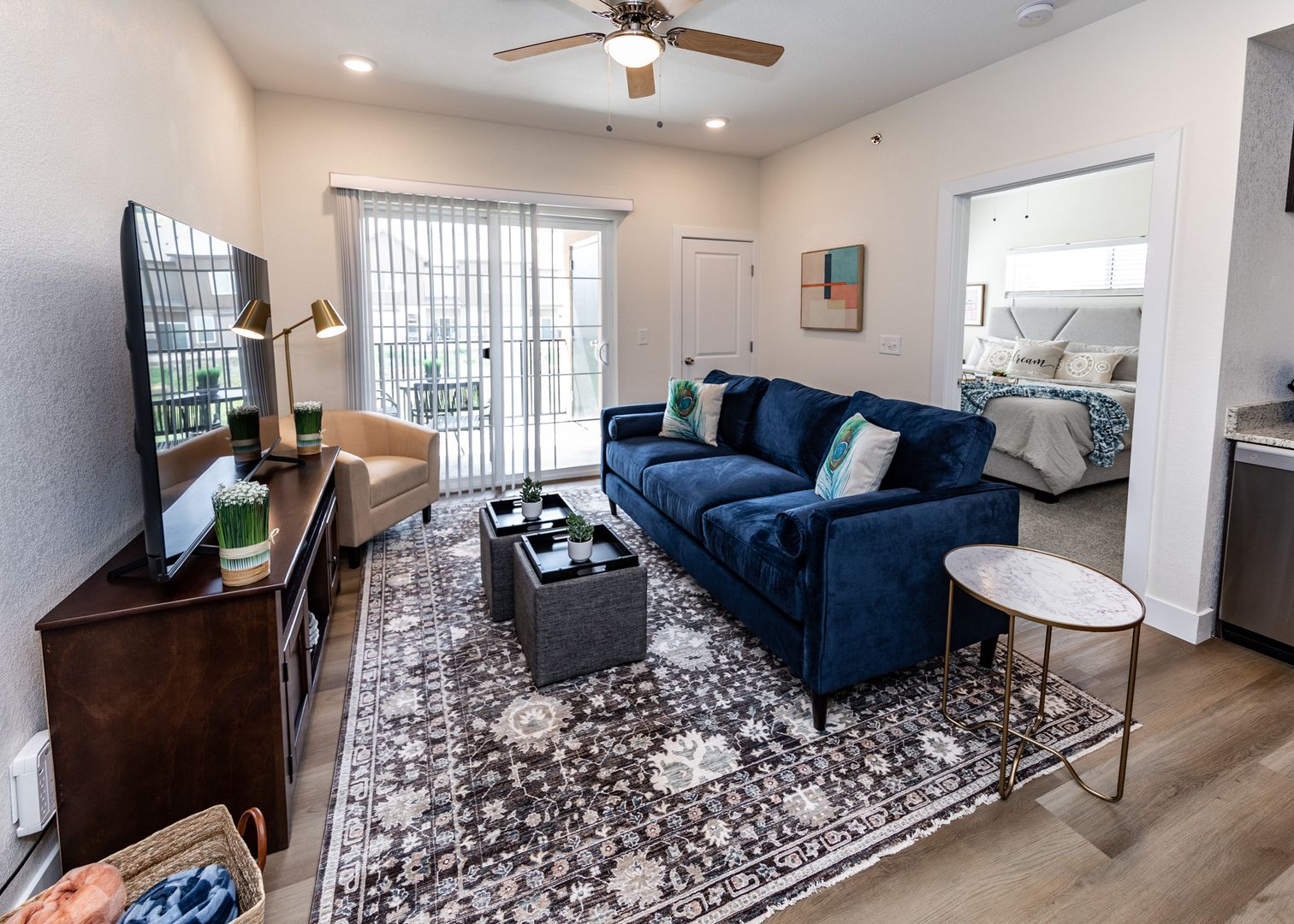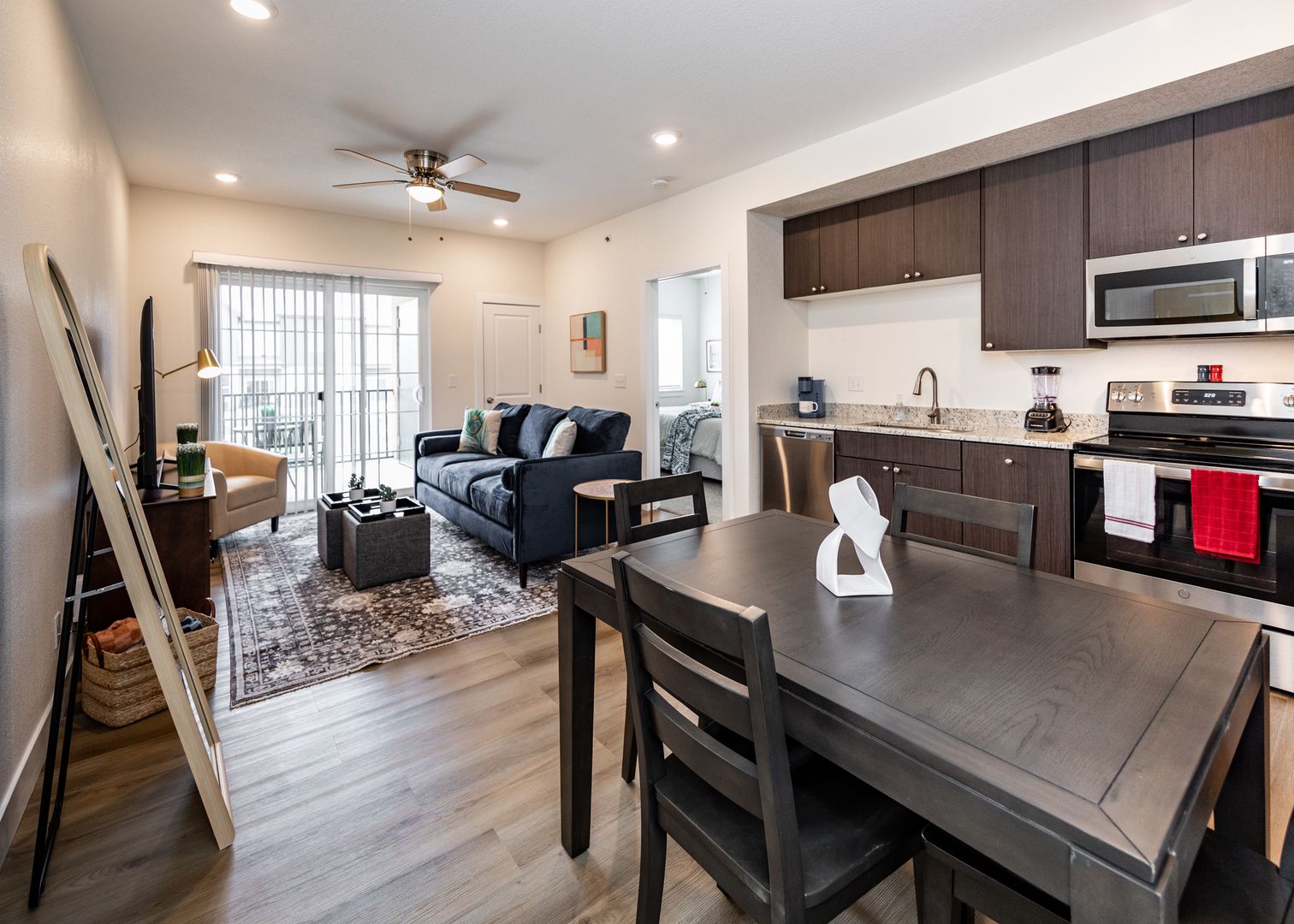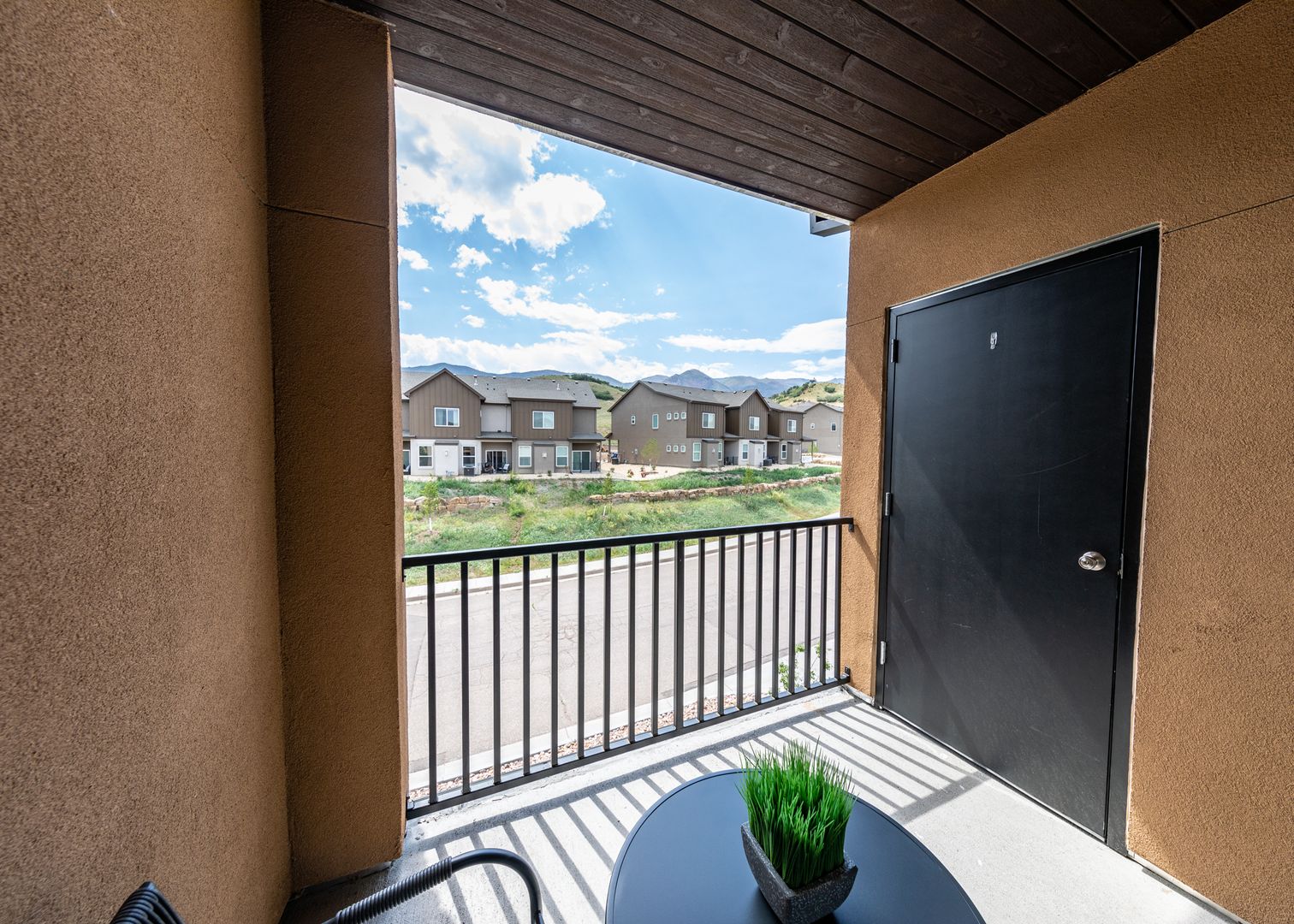 Enjoy being close to nature in this top floor 1 bedroom 1 bath contemporary apartment under 3 miles from Garden of the Gods. This luxury apartment has it all with stainless steel appliances, granite countertops, 42" soft close cabinets, large pantry, 9' ceilings, luxury vinyl plank flooring in main living areas, fully electric A/C and heat in main living area and bedroom, and a full size side by side washer and dryer. The unit has everything you need for a mid term stay. The bedroom is outfitted with a Queen bed with smart TV and decorating barn door leading to an attached big walk-in closet with washer and dryer, and full bathroom with shower/tub combo and lots of storage space. Enjoy evening drinks on your private patio with an additional storage closet over looking Mountain Shadows open space. The outdoor enthusiast will love this location with Ute Valley Park only .4 miles from back door, Mountain Shadows Open Space only 600 ft from front door, and the famous Garden of the Gods Park not even 3 miles away. Bring your Mountain Bike and take off. 2 Furry friends are welcomed with additional $300 pet deposit and $35 pet rent. Off street parking available around the building or private oversized 1 car garages available for rent.