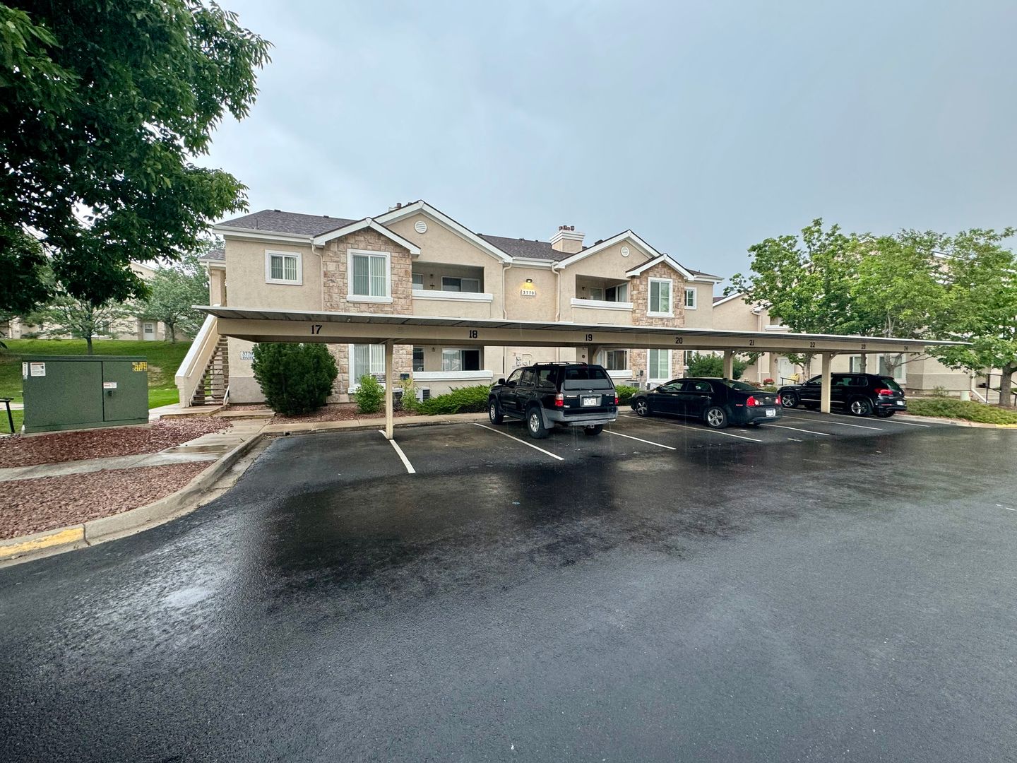 This main level condo is located in a great community with open living room and dining room. Living room features a gas fireplace and kitchen has open standing bar to the living room. Large master with attached bath, oval soaking tub and walk in closet. 2nd bedroom with walk in closet and full bath off hallway. Central Ac and community pool to enjoy in the Summer months. Detached one car garage and one covered parking spot. Great views of the mountains and meticulously maintained landscaping throughout the complex. Washer and dryer are provided in unit for convenience.