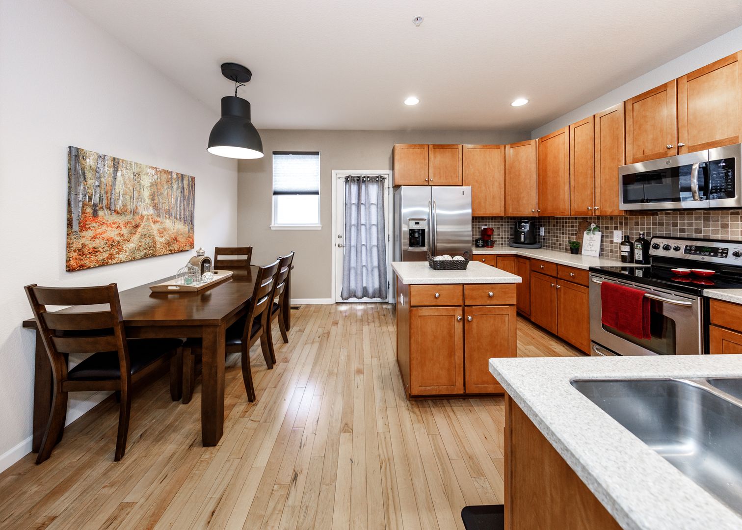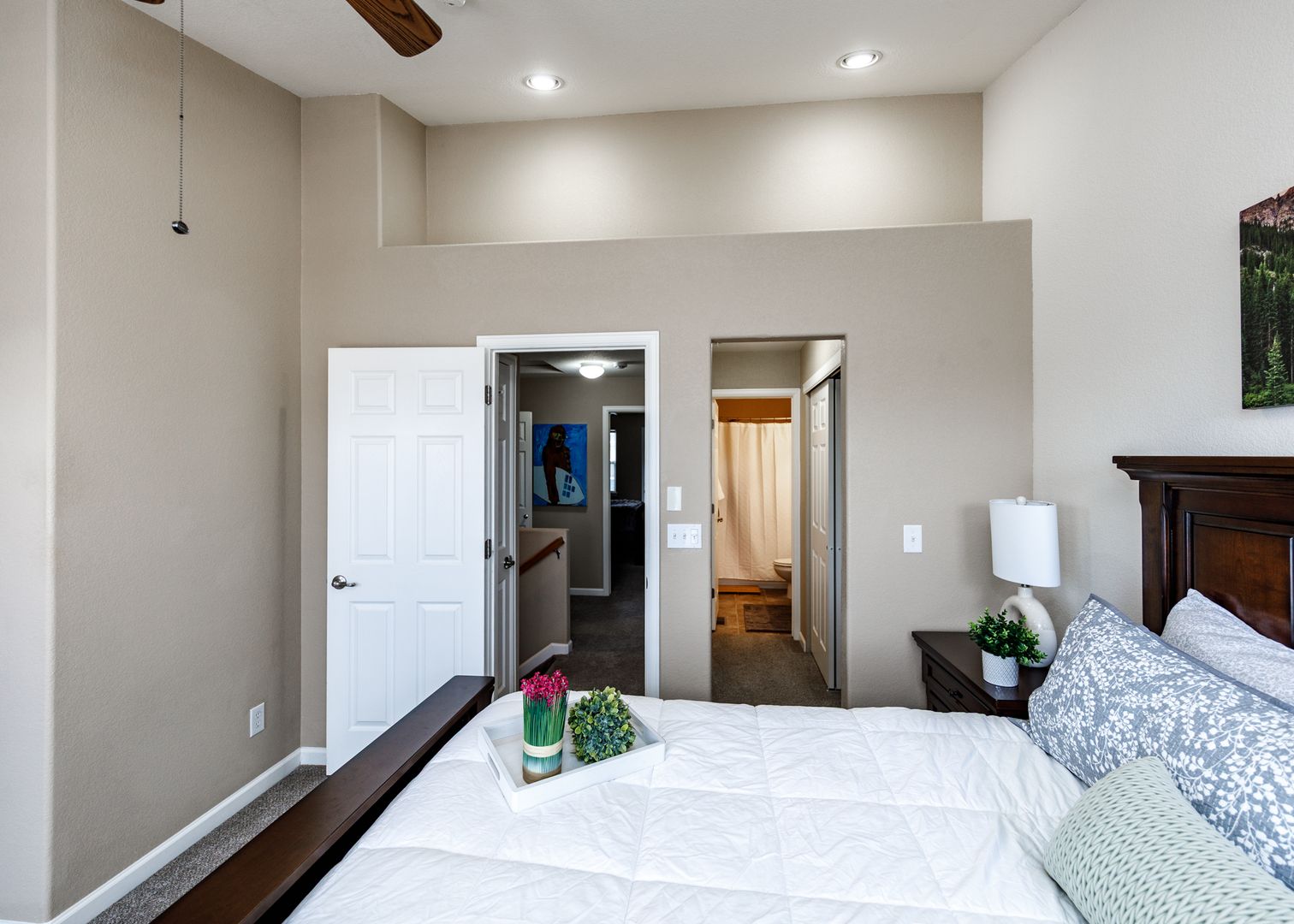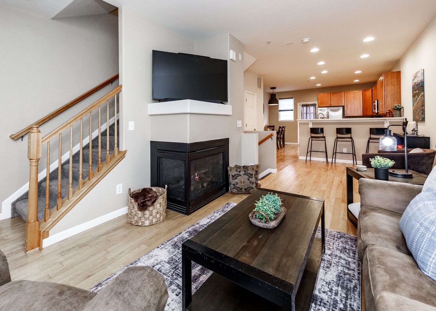 Work from home in the private first-floor office or take a short walk to the nearby central business and financial district. The bright and open main level is ideal for relaxing or entertaining, complete with a cozy gas fireplace in the living room, a welcoming dining area, and a stylish kitchen. Upstairs, the primary and guest suites provide peaceful retreats, with the laundry room conveniently located on the same level.