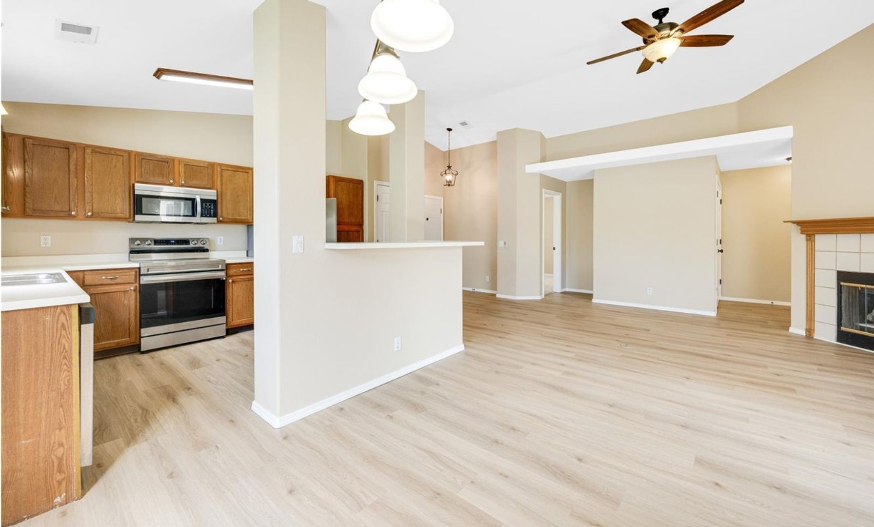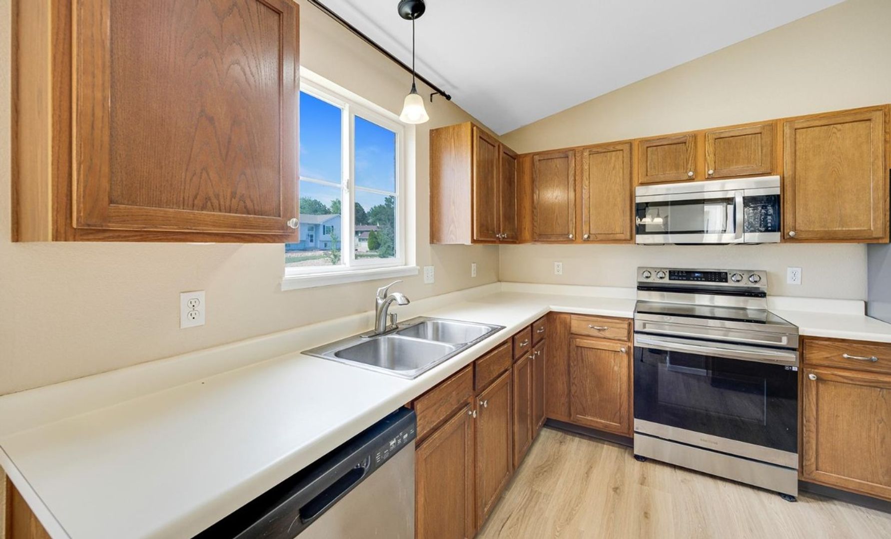 Welcome to this wonderful top-floor, 3-bedroom, 2-bath condo located in the desirable Strawberry Fields Condominium Complex. This newly updated upper-level unit offers a detached one-car garage along with an assigned carport parking space. The interior features include fresh new paint throughout, new luxury vinyl plank flooring in the kitchen, living room, hallway, and bathrooms, and new carpet in all three bedrooms. Recent upgrades include updated light fixtures, new cabinet hardware in the kitchen, and a recently installed new water heater. Step outside to a covered balcony with space for a small table and chairs, along with additional storage accessible from the walk-out balcony. Residents enjoy access to nearby amenities such as an exercise room, meeting room, tennis court, hot tub, and swimming pool. The detached garage is conveniently located near the unit entrance, and the complex offers immediate access to a beautiful park and hiking trails. Ideally situated just minutes from Fort Carson and Peterson Space Force Base. Rent includes water, sewer, trash, and snow removal. Enjoy easy, maintenance-free living.