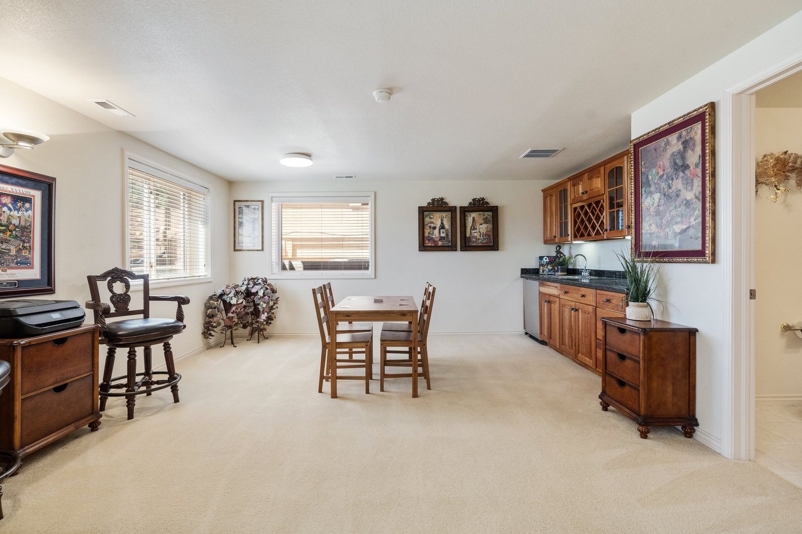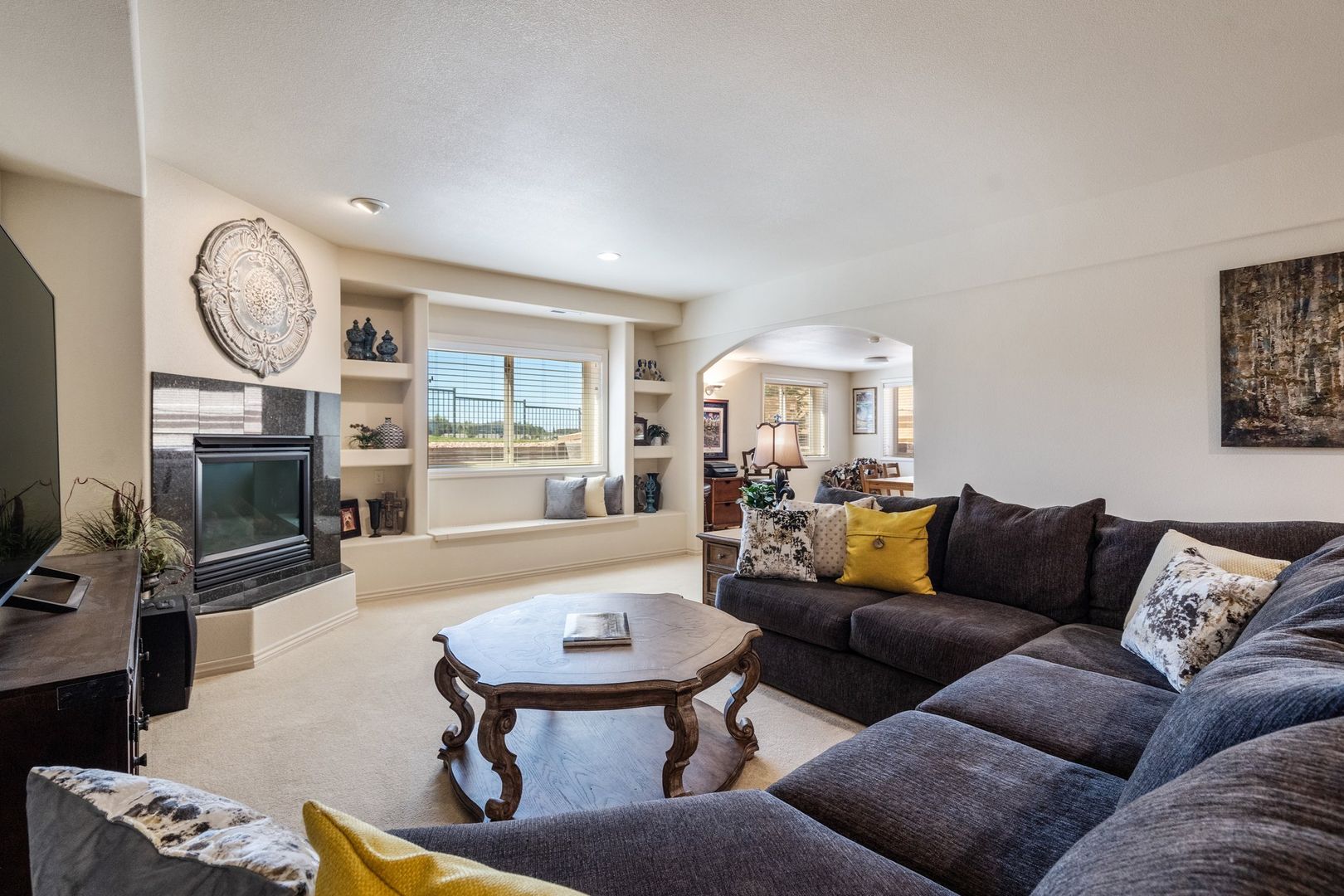 Effortless Patio Home Living at It's Finest. This Highly Sought After No Maintenance Stucco Rancher is located on a cul-de-sac in the desirable Pine Creek area in the D20 school area. A dream-like setting with the back of the home nestled against the gorgeous Richard Phelps-designed Pine Creek Golf Course (17th Fairway), which frames majestic Pikes Peak. Boasting three bedrooms, plus a separate office, 2 full baths, 2 half baths and a two-car garage while providing a flowing floor plan.  Luxurious finishes that are contemporary and high-end throughout. Walk in with the office on the right and coat closet on the left, further down the hall is the dining room on the left and living room with gas fireplace and built-ins, gourmet kitchen with gas stovetop and large pantry, laundry room with washer/dryer, shelving, utility sink and window, kitchen nook, half bath, primary bedroom and large spa like bathroom with 2 closets, double vanity, jetted tub, and large walk in shower make up the main level. Off of the kitchen nook is a spacious deck overlooking the golf course with magnificent views of the front range.  Electric awning shades the deck for evening drinks. Walk down to the basement into a large bonus area with gas fireplace and built-ins, and wet bar, 2 bedrooms with one of them ensuite and walk-in closets, another half bath, and large storage room. An entertainer's delight with the gourmet kitchen and game room with wet bar and large deck help create an inviting atmosphere. What more could one want with ample storage, lawn care, snow removal, an ideal location, proximity to the Air Force, the Shops at Briargate, I-25 Corridor, and much more! Come see for yourself. Trash is included in rent.