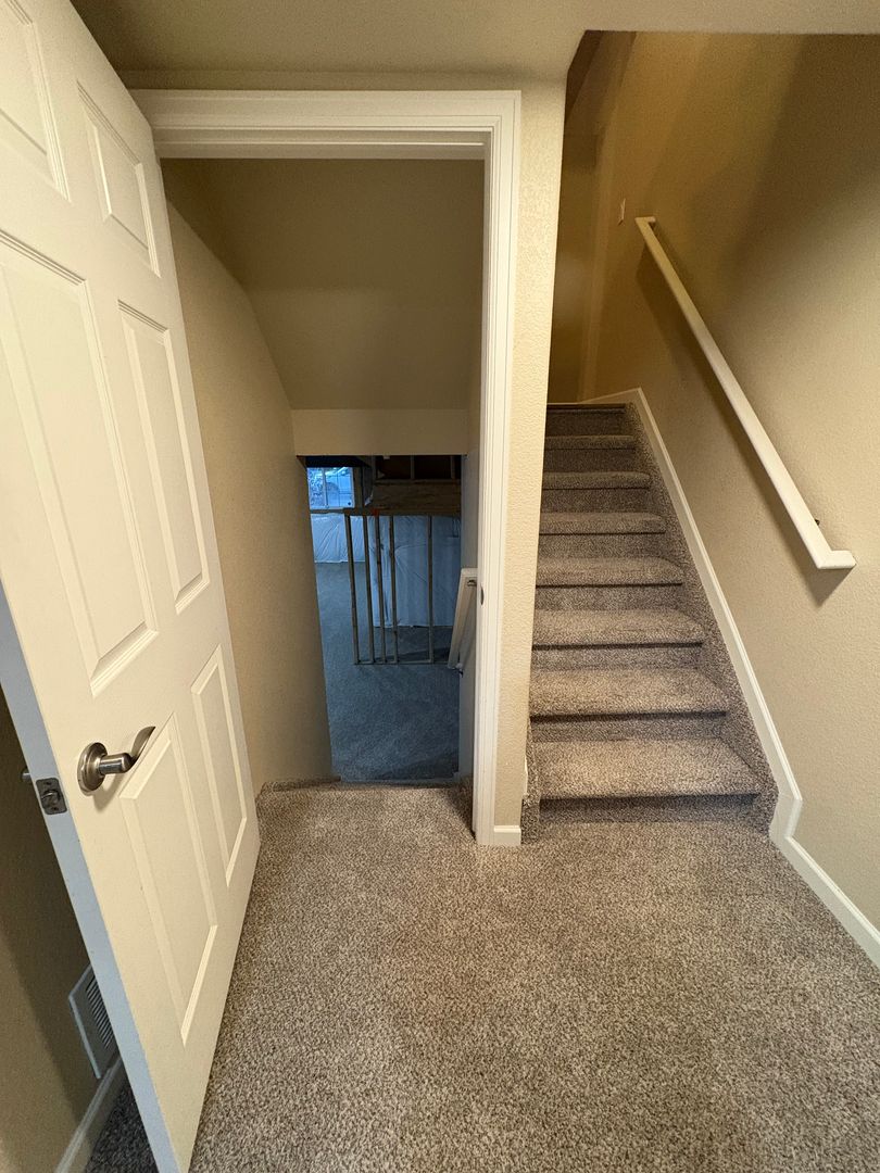 Spacious 3-story with partially finished basement and central air conditioning. 3 car tandem garage Walk into a spacious formal living room area that opens to the formal living room that opens to the kitchen with ample space, plus a large living room downstairs with wiring for a projector for those movie nights. Three bedrooms upstairs, including large master with a private bathroom. Open kitchen with stainless appliances and granite counter tops with walk-in pantry. Laundry room with washer and dryer hookups. Backyard patio, plus a storage shed for tenant use. Large partially finished basement with tons of potential as a flex space.